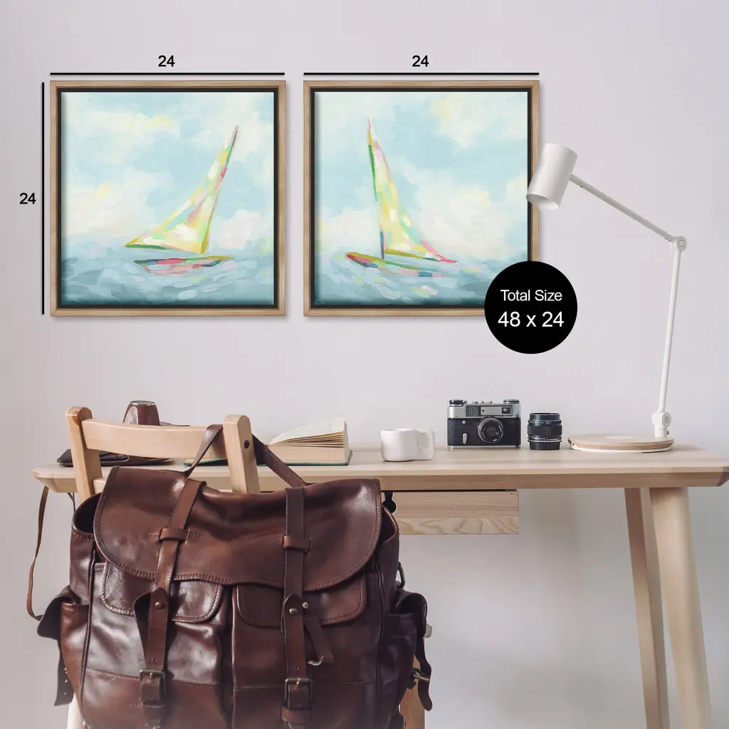 Elevate your home or office to the next level with Stupell Framed Floating Canvas Wall Art. Our premium hand-stretched canvas is mounted securely into a sturdy lightweight frame. The museum-style gap between the wrapped canvas and the box frame gives the illusion of floating artwork. Stupell Wall Art is made in the USA.Features: Dimensions: 2 Piece Set, Each Frame is 18 x 1.7 x 18Two Piece Floating Frame Canvas Products are available as 18"x18" or 25"x25" Panels. All Floating Frame Canvas Products have a 1.7" Depth.Wall Art is Ready to Hang with Hardware Free Hanging. No Installation required. For Easy Set Up Lean or Layer Artwork on Shelf or Against Wall. Artwork is Permently Fixed into the Frame.Our elevated 1.7" Thick Floating Frame is the perfect complement to our canvas style Wall Art. We use only the highest quality inks in house with industry leading printing solutions. Canvas is hand stretched over a durable wood foundation and then mounted securly into a Modern Box Frame. Made in the USA.Artwork Relates To: Boat, Sailboat, Transportation, Vehicle, Watercraft, Modern, Ocean, Sea, Nautical, Maritime, AbstractDesign by June Erica Vess