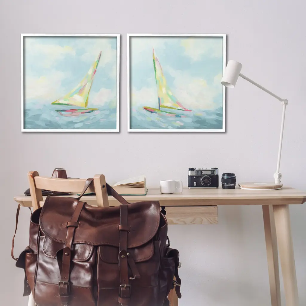 Fill any space in your home or office with our Framed Wall Art Sets. Our framed artwork is securely mounted into a 1.5-inch thick wood grain frame and ready to hang. Frames are available in three alluring styles: black, gray farmhouse and white. Stupell Wall Art is made in the USA.Features: Dimensions: 2 Piece Set, Each Panel is 12 x 1.5 x 12 FramedTwo Piece Framed Giclee Sets are available as 12"x12", 17"x17" or 24"x24" Panels. All Framed giclee Products have a 1.5" Depth.Wall Art is Ready to Hang with Hardware Free Hanging. No installation required. For Easy Set Up Lean or Layer Artwork on Shelf or Against Wall.Curated Wall Art Sets make it easy for you complete the theme for any room. Our giclée prints are carefully mounted on a durable MDF backing, and then perfectly finished in a 1.5 inch thick woodgrain frame. Mounted frame colors include black, gray farmhouse and white. Made In USA.Artwork Relates To: Boat, Sailboat, Transportation, Vehicle, Watercraft, Modern, Ocean, Sea, Nautical, Maritime, AbstractDesign by June Erica Vess