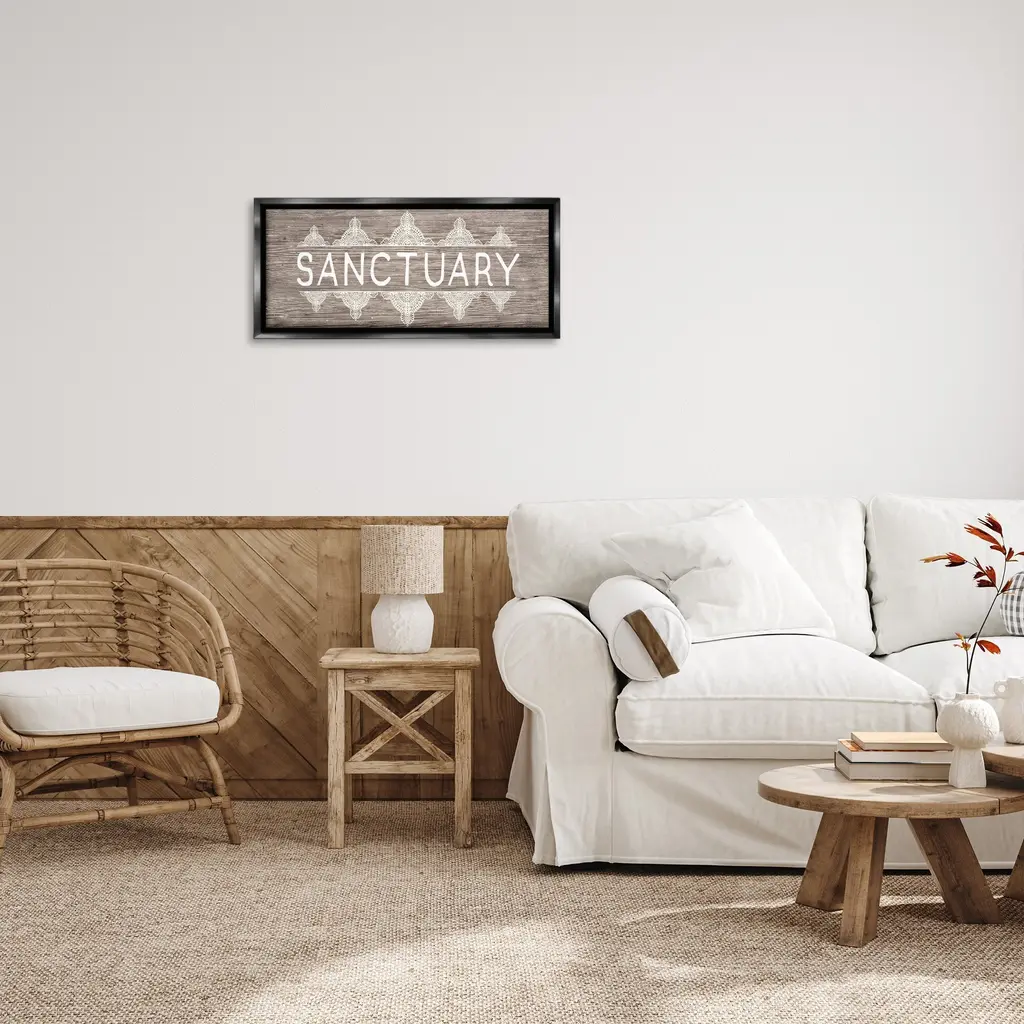 Stupell Sanctuary With Paisley Pattern Framed Floater Canvas Wall Art Design By Daphne Polselli - 25 X 11 - Black