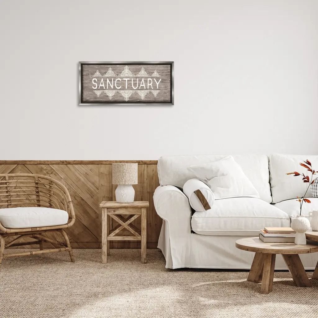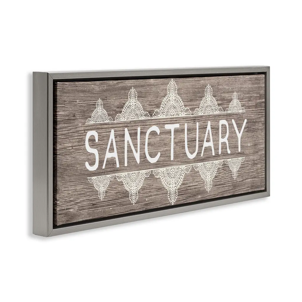 Stupell Sanctuary With Paisley Pattern Framed Floater Canvas Wall Art Design By Daphne Polselli - 25 X 11 - Grey