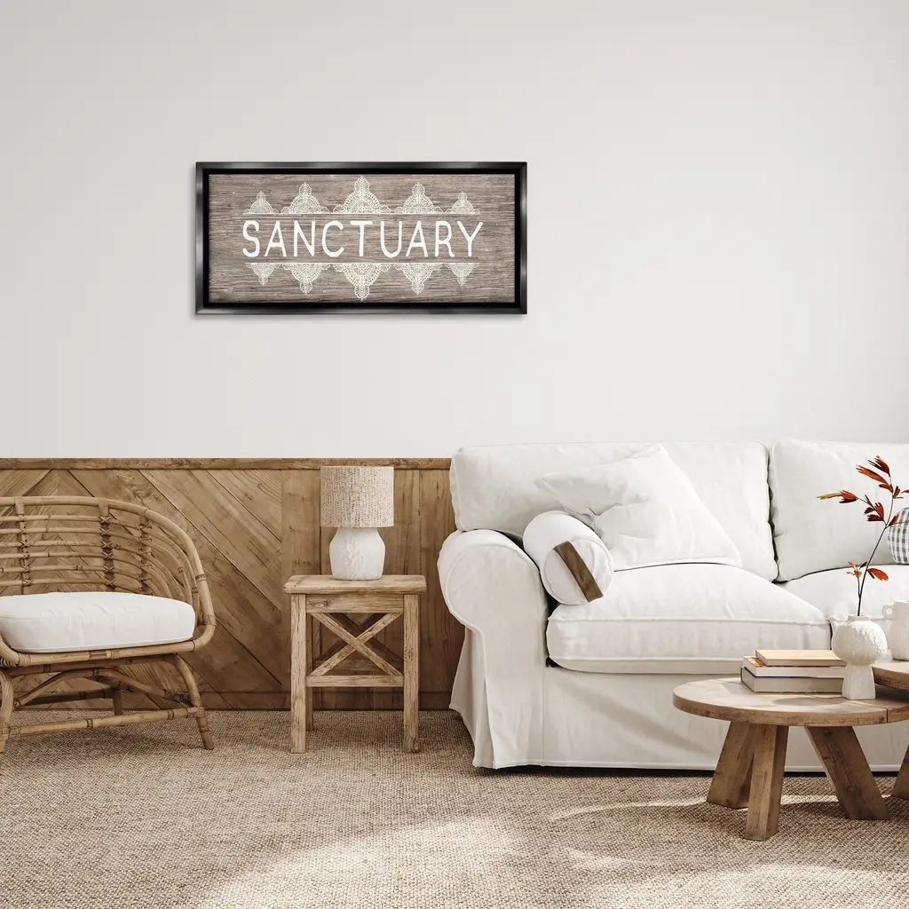 Stupell Sanctuary With Paisley Pattern Framed Floater Canvas Wall Art Design By Daphne Polselli - 31 X 14 - Black