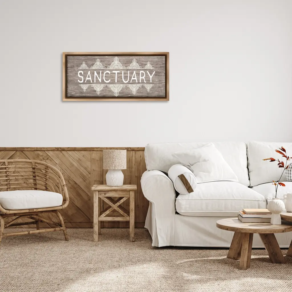 Stupell Sanctuary With Paisley Pattern Framed Floater Canvas Wall Art Design By Daphne Polselli - 31 X 14 - Brown