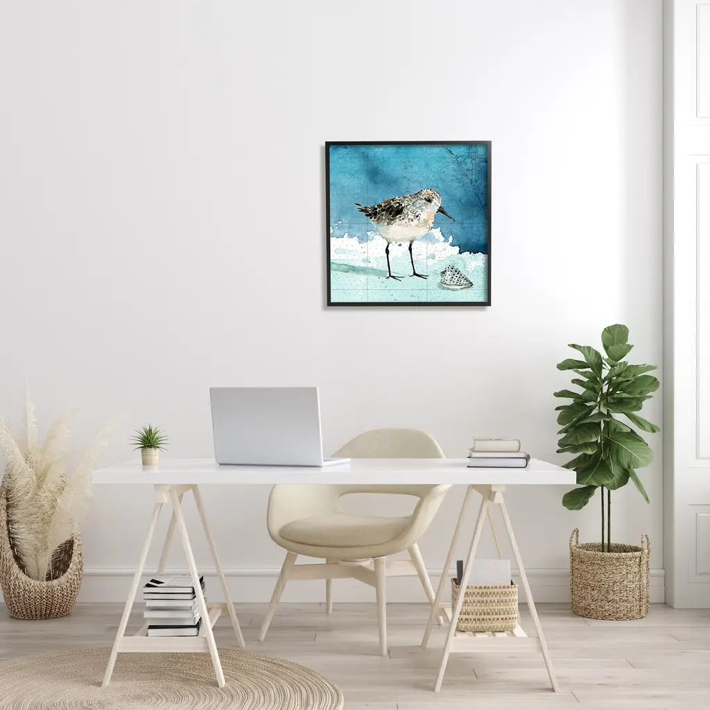 Stupell Sandpiper Bird And Shell Nautical Ocean Map Framed Wall Art - Blue - 24 X 24 - Black