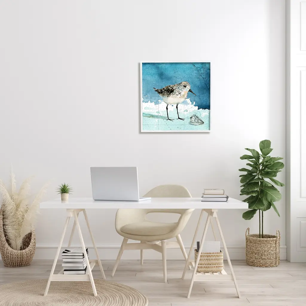 Stupell Sandpiper Bird And Shell Nautical Ocean Map Framed Wall Art - Blue - 24 X 24 - White