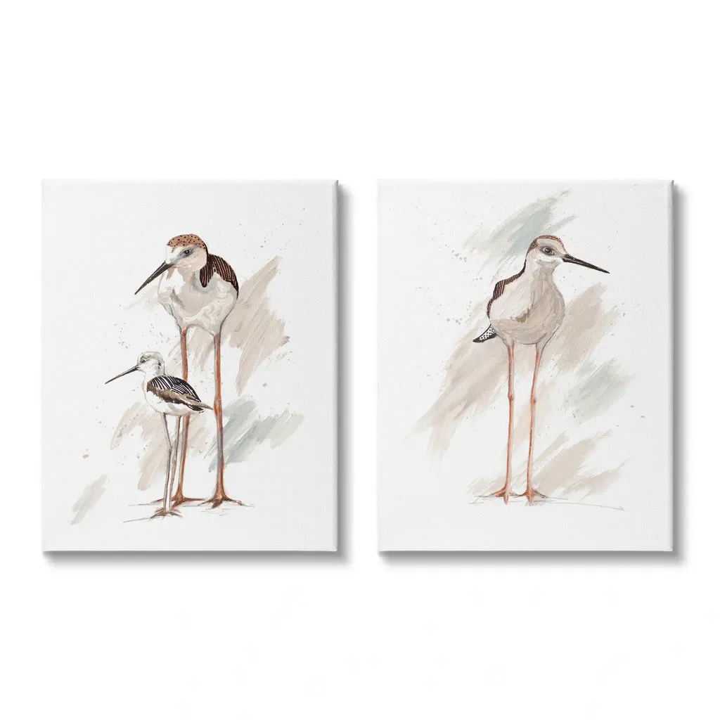 Stupell Sandpiper Bird Family Sunny Beach Coastal Bird 2Pc Multi Piece Framed Wall Art Set - White - 11 X 14 - White