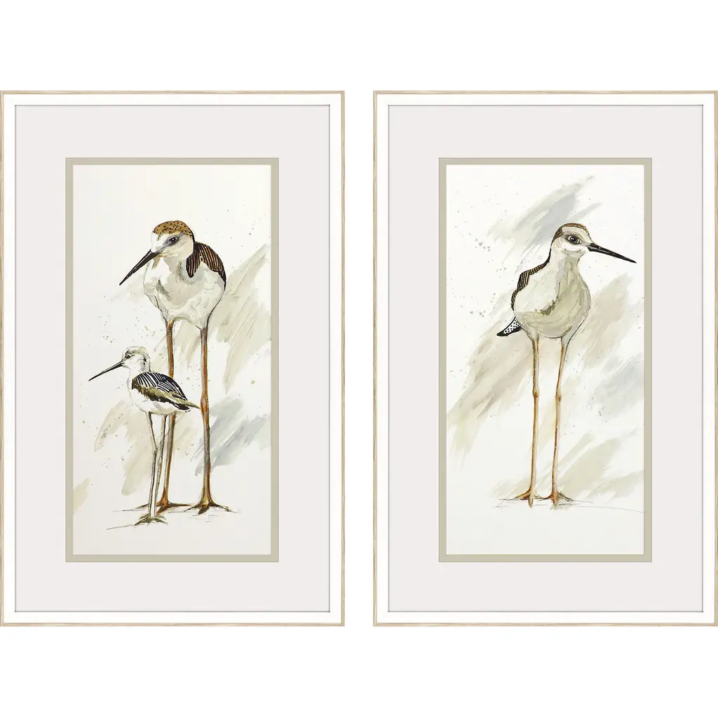 Stupell Sandpiper Bird Family Sunny Beach Coastal Bird 2Pc Multi Piece Framed Wall Art Set - White - 16 X 20 - Grey