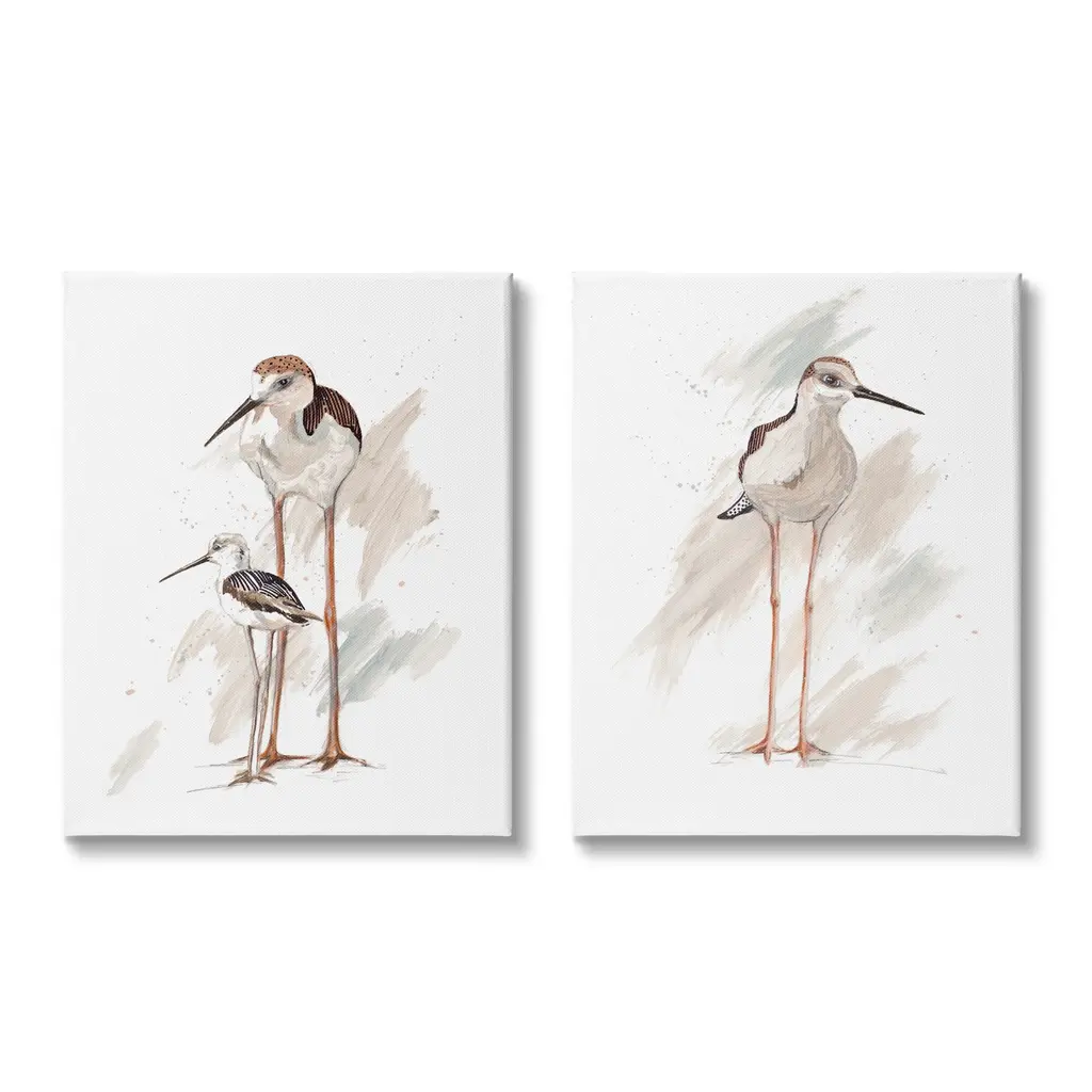 Stupell Sandpiper Bird Family Sunny Beach Coastal Bird 2Pc Multi Piece Framed Wall Art Set - White - 16 X 20 - White