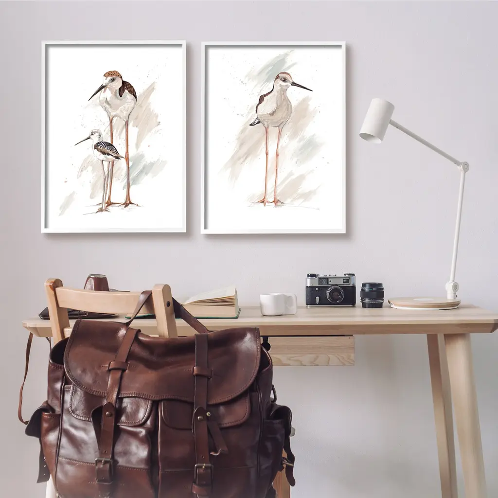 Stupell Sandpiper Bird Family Sunny Beach Coastal Bird 2Pc Multi Piece Framed Wall Art Set - White - 24 X 30 - White