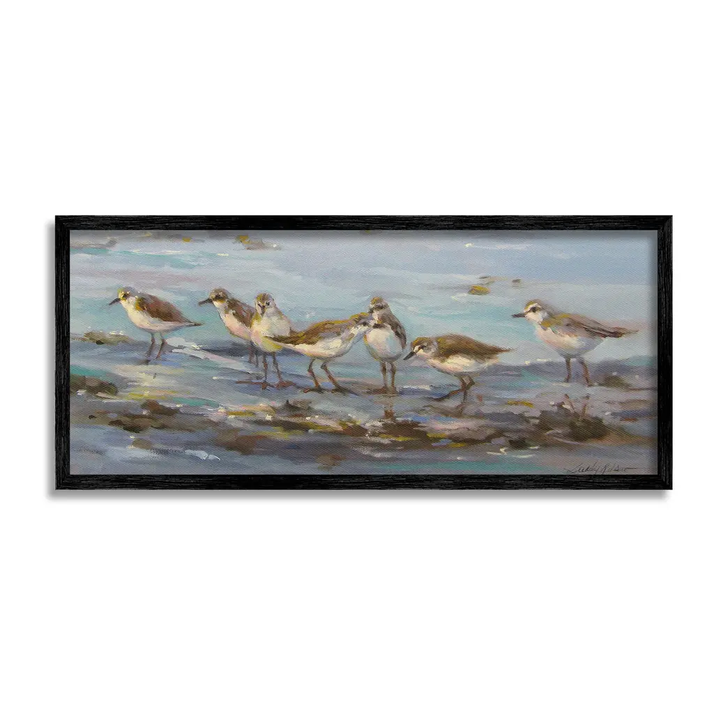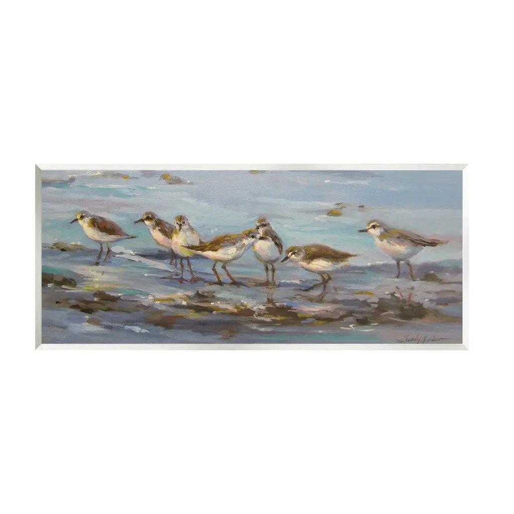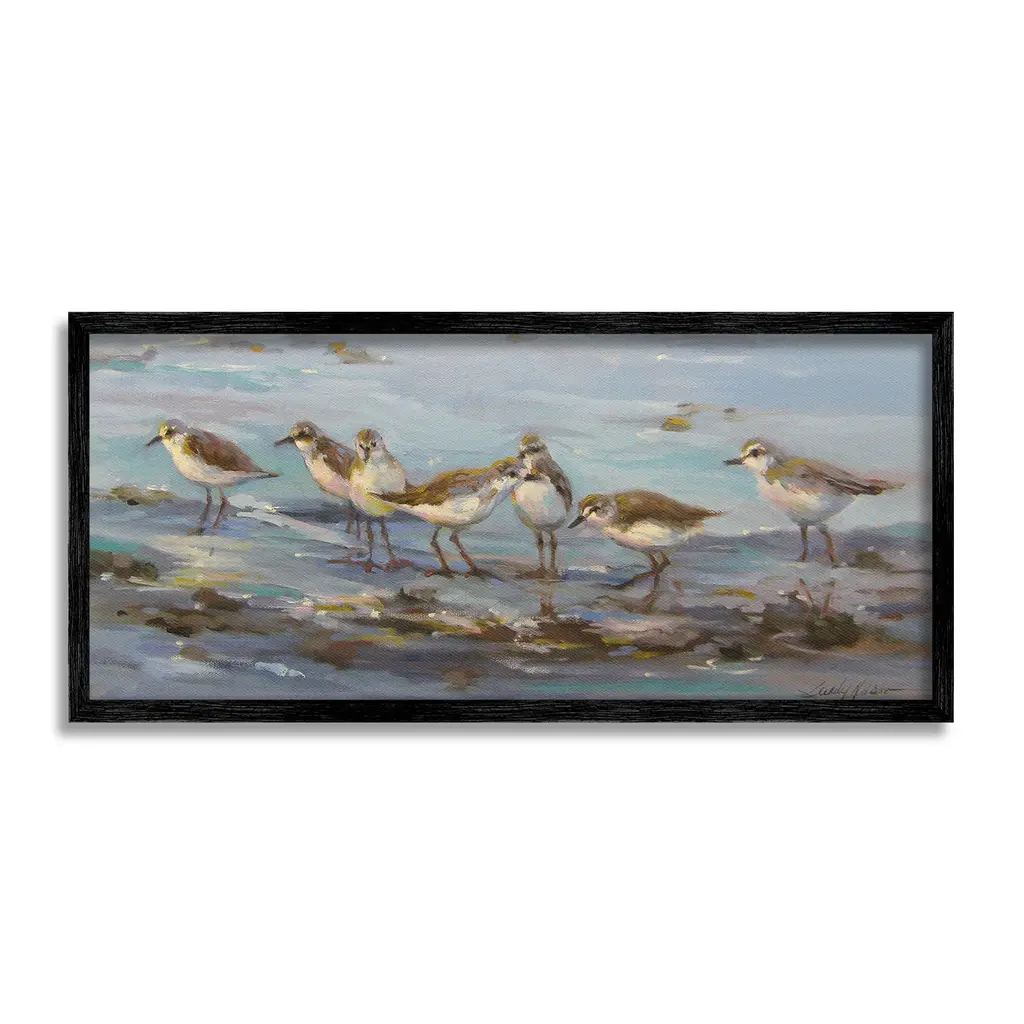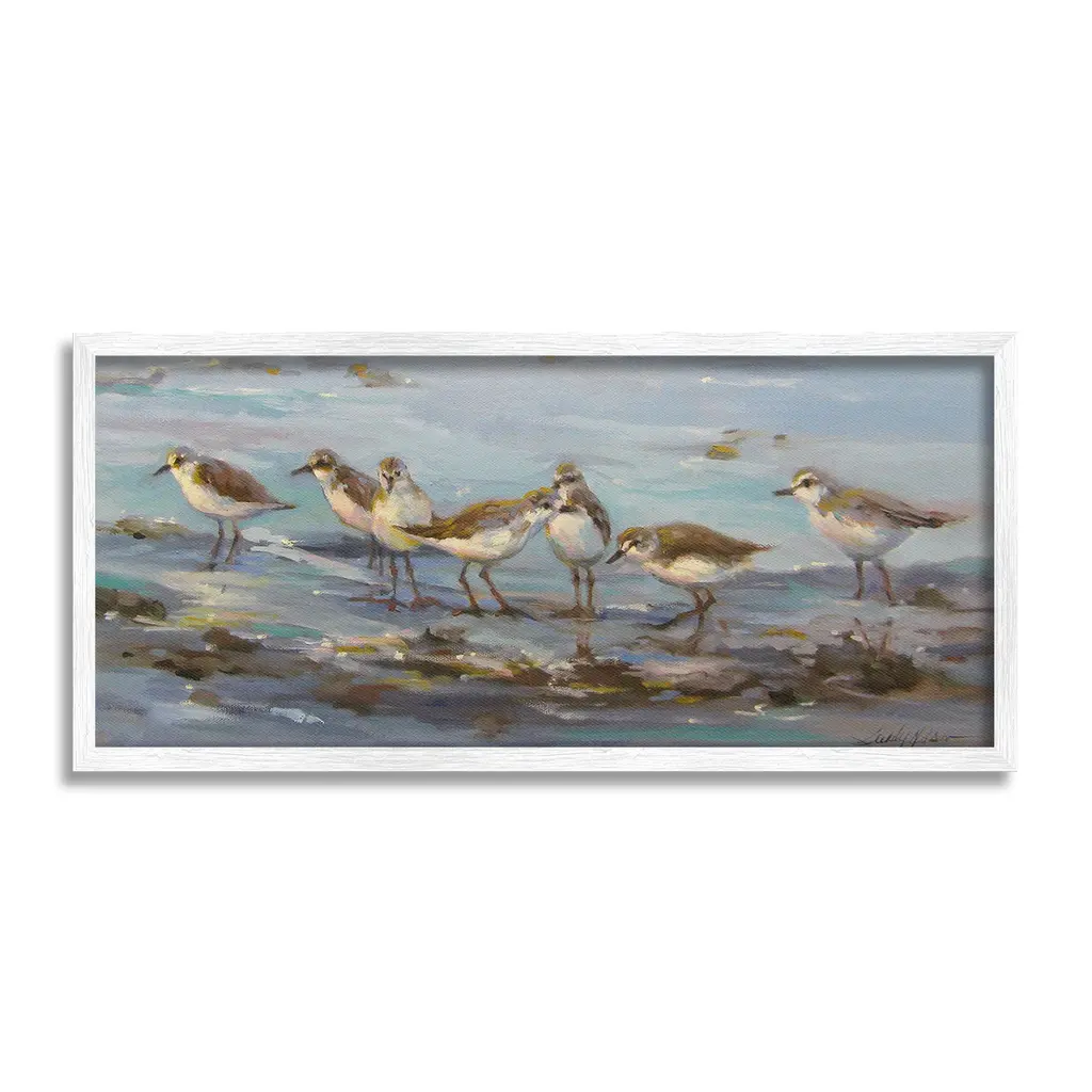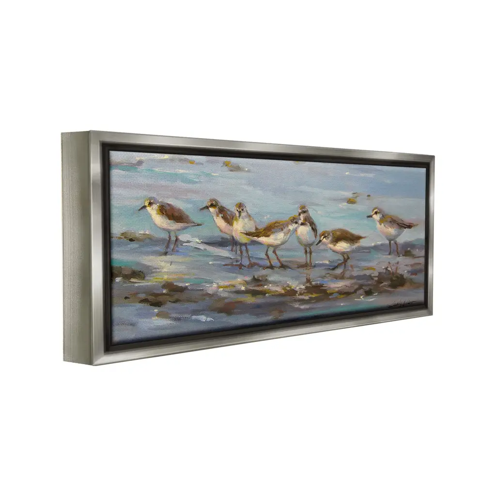 Elevate your home or office to the next level with Stupell Framed Floating Canvas Wall Art. Our premium hand-stretched canvas is mounted securely into a sturdy lightweight frame. The museum-style gap between the wrapped canvas and the box frame gives the illusion of floating artwork. Stupell Wall Art is made in the USA.Features: Dimensions: 25 x 1.7 x 11 Frame, 24 x 1.5 x 10 Canvas ArtFloating Frame Canvas Products are available in sizes 25"x11" and 31"x14". All Floating Frame Canvas Products have a 1.7" Depth.Wall Art is Ready to Hang with Hardware Free Hanging. No Installation required. For Easy Set Up Lean or Layer Artwork on Shelf or Against Wall. Artwork is Permently Fixed into the Frame.Our elevated 1.7" Thick Floating Frame is the perfect complement to our canvas style Wall Art. We use only the highest quality inks in house with industry leading printing solutions. Canvas is hand stretched over a durable wood foundation and then mounted securly into a Modern Box Frame. Made in the USA.Artwork Relates To: Animal, Beak, Bird, Waterfowl, Painting, Sea, Water, Shoreline, Beach, SandpiperDesign by Sandy Nelson