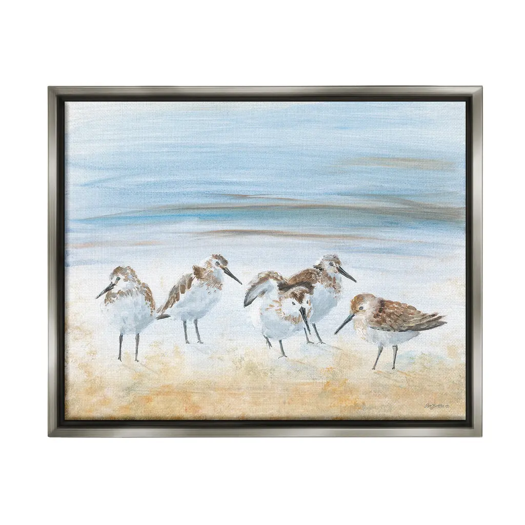 Stupell Sandpiper Flock On Shore Framed Floater Canvas Wall Art Design By Sandy Nelson - 31 X 14 - Grey
