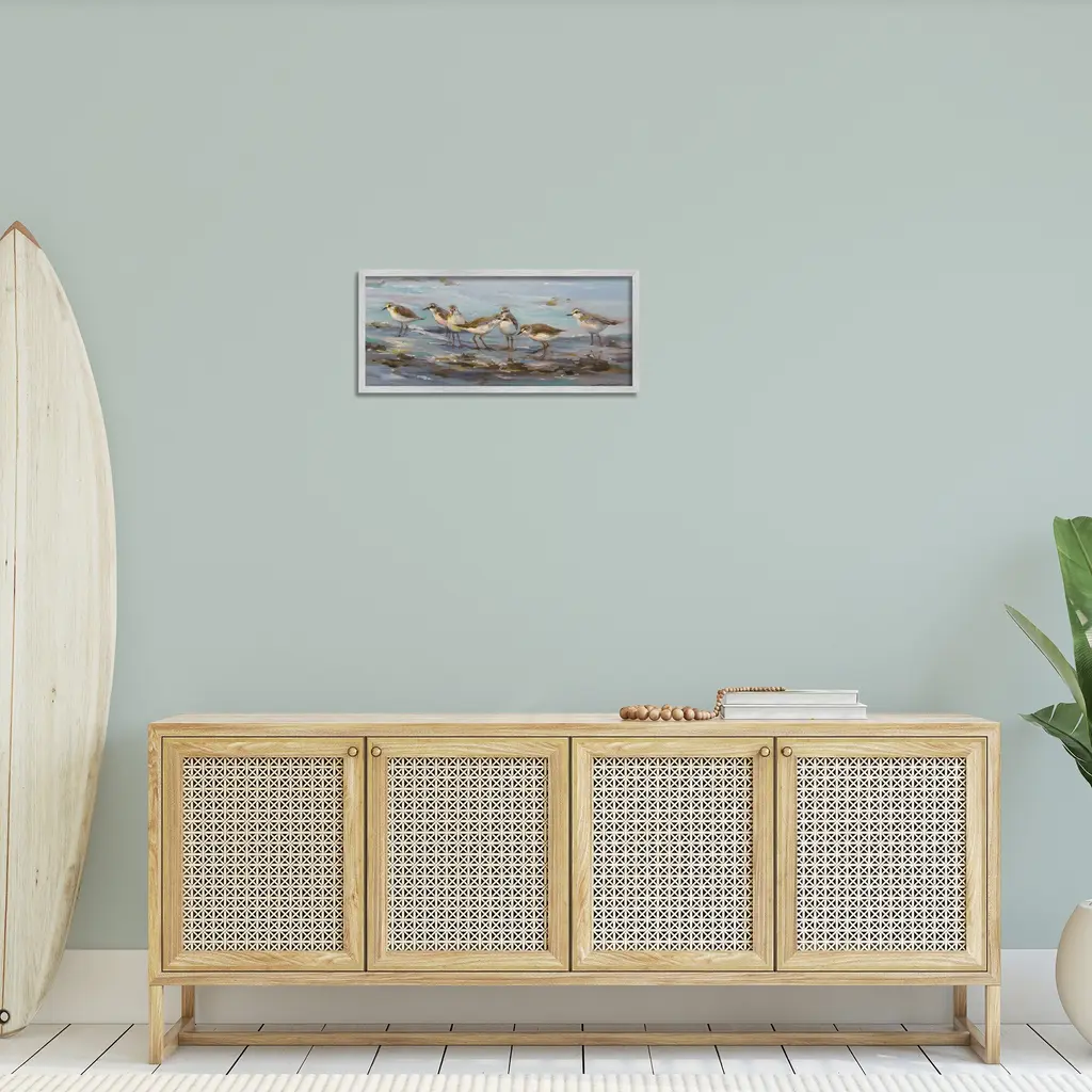 Add dimension to any room with our textured Framed Giclee Artwork. Our framed artwork is securely mounted into a 1.5-inch thick wood grain frame and ready to hang. Frames are available in three alluring styles: black, gray farmhouse and white. In addition, you should check out our oversized options if you want a statement piece. Stupell Wall Art is made in the USA.Features: Dimensions: 24 x 1.5 x 10 FramedFramed Giclee Product Sizes include 24"x10" and 30"x13". All Framed Giclee products have a 1.5" Depth.Wall Art is Ready to Hang with Hardware Free Hanging. No installation required. For Easy Set Up Lean or Layer Artwork on Shelf or Against Wall.Our giclée prints are carefully mounted on a durable MDF backing, and then perfectly finished in a 1.5 inch thick woodgrain frame. Mounted frame colors include black, gray farmhouse and white. Made In USA.Artwork Relates To: Animal, Beak, Bird, Waterfowl, Painting, Sea, Water, Shoreline, Beach, SandpiperDesign by Sandy Nelson