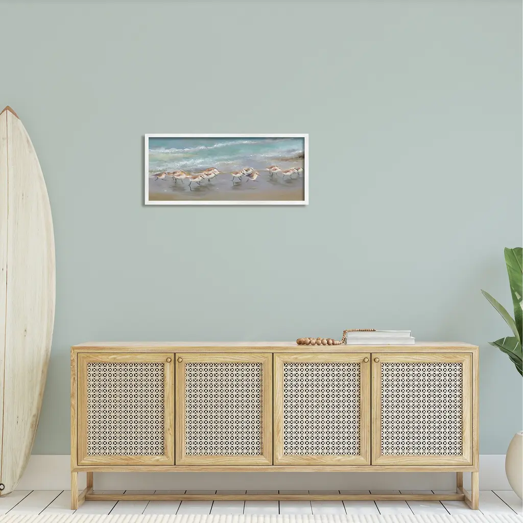 Our Framed Giclee Wall Art adds a touch of class to any space in your home or office. Frames are available in three alluring styles: black, gray farmhouse and white. Our textured artwork will add more depth and dimension to any space. Each piece is mounted with a 1.5 inch thick wood grain frame that is ready to hang! Looking for a statement piece? We have oversized artwork available. Room Type: Living Room, Den, Hallway, Office, Entryway, Study, Dining Room or Bedroom, Guest Room, Studio, Dorm or BoudoirFeatures: Dimensions: 24 x 1.5 x 10 FramedFramed Giclee Sizes Include Standard: 24 x 1.5 x 10 Oversized: 30 x 1.5 x 13Wall Art is Ready to Hang - No Installation or Hardware Needed. For Easy Set Up Lean or Layer Artwork on Shelf or Against Wall.Our giclée prints are carefully mounted on a durable MDF backing, and then perfectly finished in a 1.5 inch thick woodgrain frame. Mounted frame colors include black, gray farmhouse and white. Made In USA.Artwork Relates To: Animal, Bird, Nature, Outdoors, Sea, Water, Beach, Coast, Shoreline, SandpiperDesign by Rick Novak
