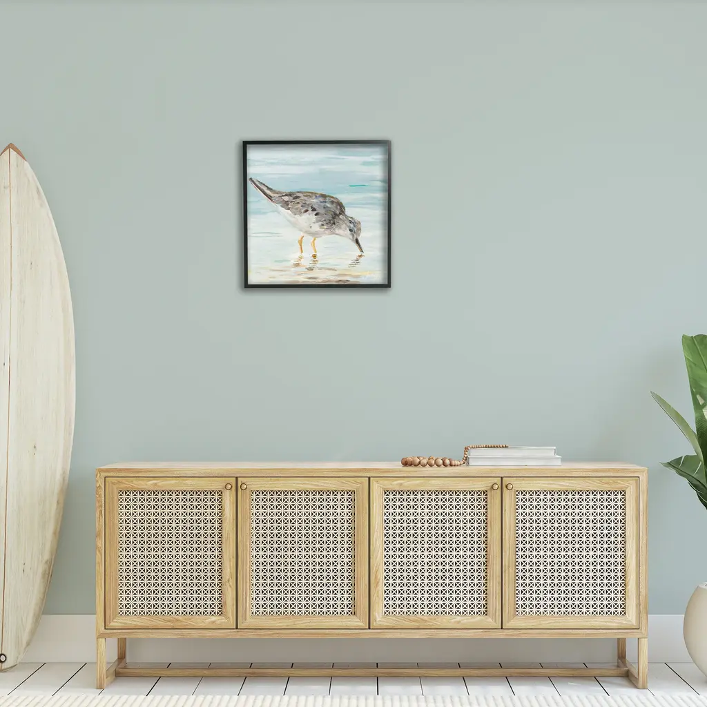Stupell Sandpiper Hunting On Beach Coast Shallow Nautical Waters Framed Wall Art - 24 X 24 - Black