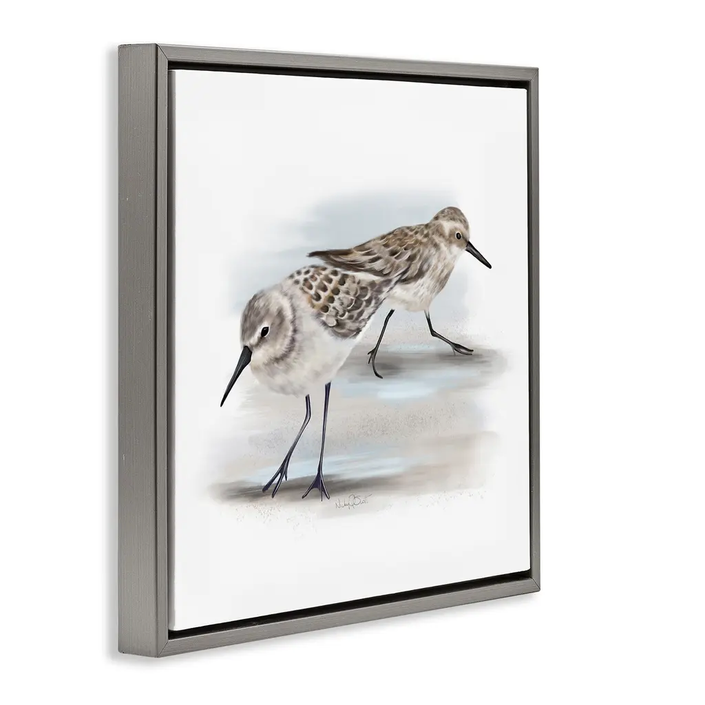 Elevate your home or office to the next level with Stupell Framed Floating Canvas Wall Art. Our premium hand-stretched canvas is mounted securely into a sturdy lightweight frame. The museum-style gap between the wrapped canvas and the box frame gives the illusion of floating artwork. Stupell Wall Art is made in the USA.Features: Dimensions: 18 x 1.7 x 18 Frame, 17 x 1.5 x 17 Canvas ArtFloating Frame Canvas Products are available in sizes 18"x18" and 25"x25". All Floating Frame Canvas Products have a 1.7" Depth.Wall Art is Ready to Hang with Hardware Free Hanging. No Installation required. For Easy Set Up Lean or Layer Artwork on Shelf or Against Wall. Artwork is Permently Fixed into the Frame.Our elevated 1.7" Thick Floating Frame is the perfect complement to our canvas style Wall Art. We use only the highest quality inks in house with industry leading printing solutions. Canvas is hand stretched over a durable wood foundation and then mounted securly into a Modern Box Frame. Made in the USA.Artwork Relates To: Nautical, Beach, Bird, Sandpiper, Minimal, TraditionalDesign by Studio Q