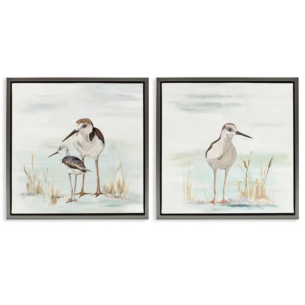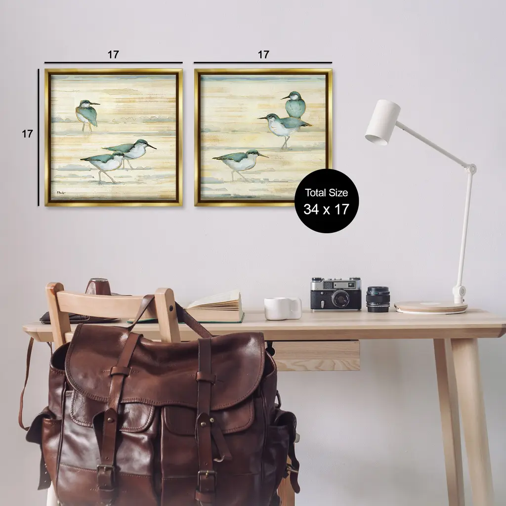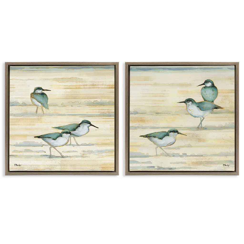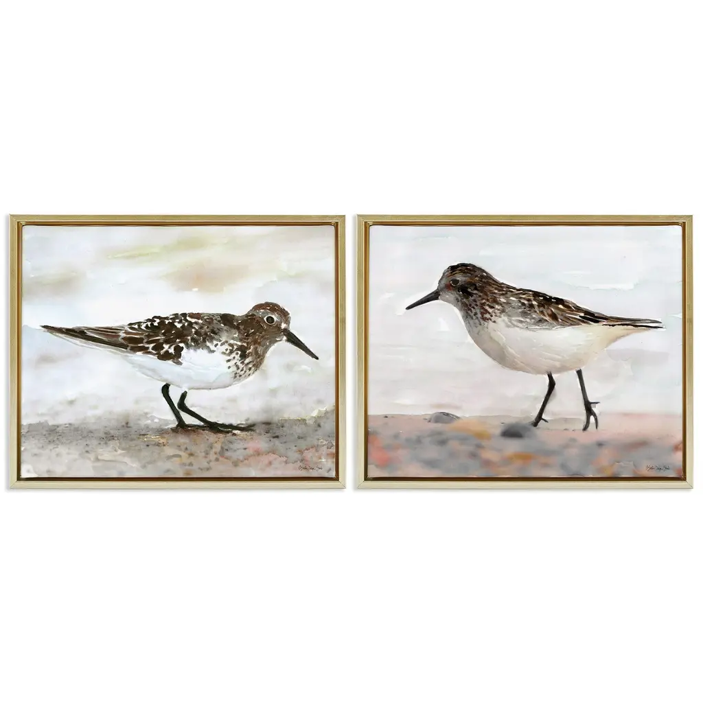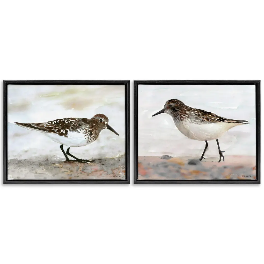Elevate your home or office to the next level with Stupell Framed Floating Canvas Wall Art. Our premium hand-stretched canvas is mounted securely into a sturdy lightweight frame. The museum-style gap between the wrapped canvas and the box frame gives the illusion of floating artwork. Stupell Wall Art is made in the USA.Features: Dimensions: 2 Piece Set, Each Frame is 18 x 1.7 x 18Two Piece Floating Frame Canvas Products are available as 18"x18" or 25"x25" Panels. All Floating Frame Canvas Products have a 1.7" Depth.Wall Art is Ready to Hang with Hardware Free Hanging. No Installation required. For Easy Set Up Lean or Layer Artwork on Shelf or Against Wall. Artwork is Permently Fixed into the Frame.Our elevated 1.7" Thick Floating Frame is the perfect complement to our canvas style Wall Art. We use only the highest quality inks in house with industry leading printing solutions. Canvas is hand stretched over a durable wood foundation and then mounted securly into a Modern Box Frame. Made in the USA.Artwork Relates To: Bird, Animal, Sea, Nature, Water, Ocean, Sandpipers, Beach, Shore, PaintingDesign by Paul Brent
