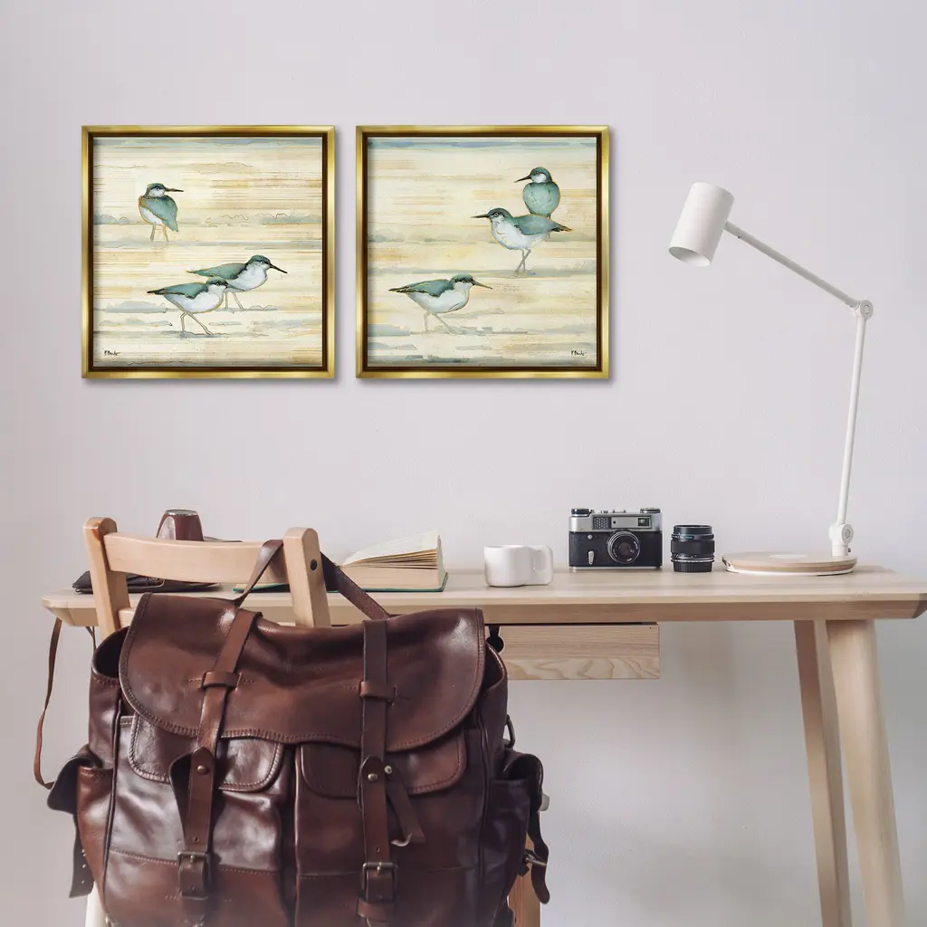 Stupell Sandpipers Abstract Water Shoreline Framed Floater Canvas Wall Art Design By Paul Brent (Set Of 2) - 18 X 18 - Gold