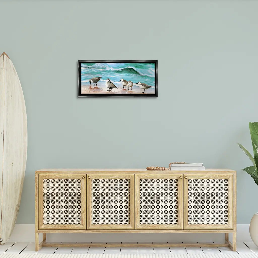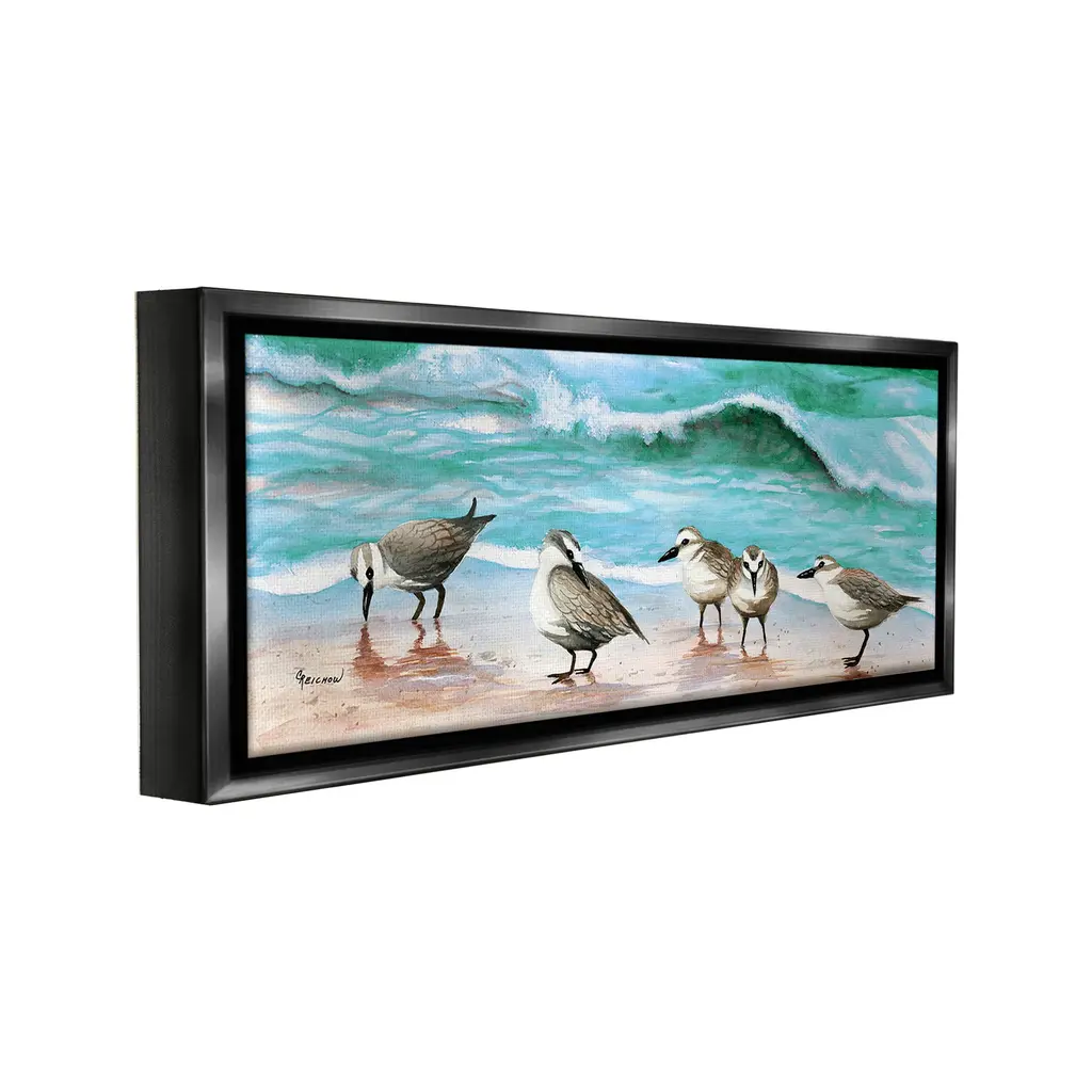 Stupell Sandpipers Along Beach Shore Framed Floater Canvas Wall Art Design By Christine Reichow - 31 X 14 - Black