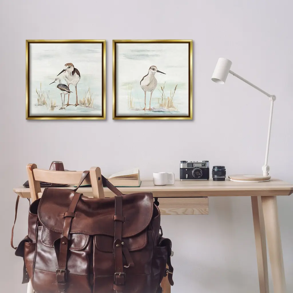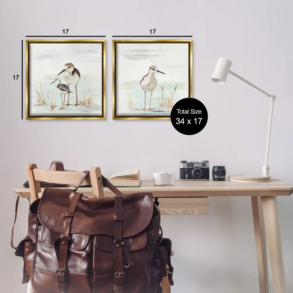 Stupell Sandpipers Among Beach Grasses Framed Floater Canvas Wall Art Design By Patricia Pinto (Set Of 2) - 18 X 18 - Gold