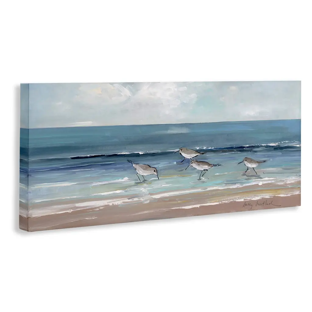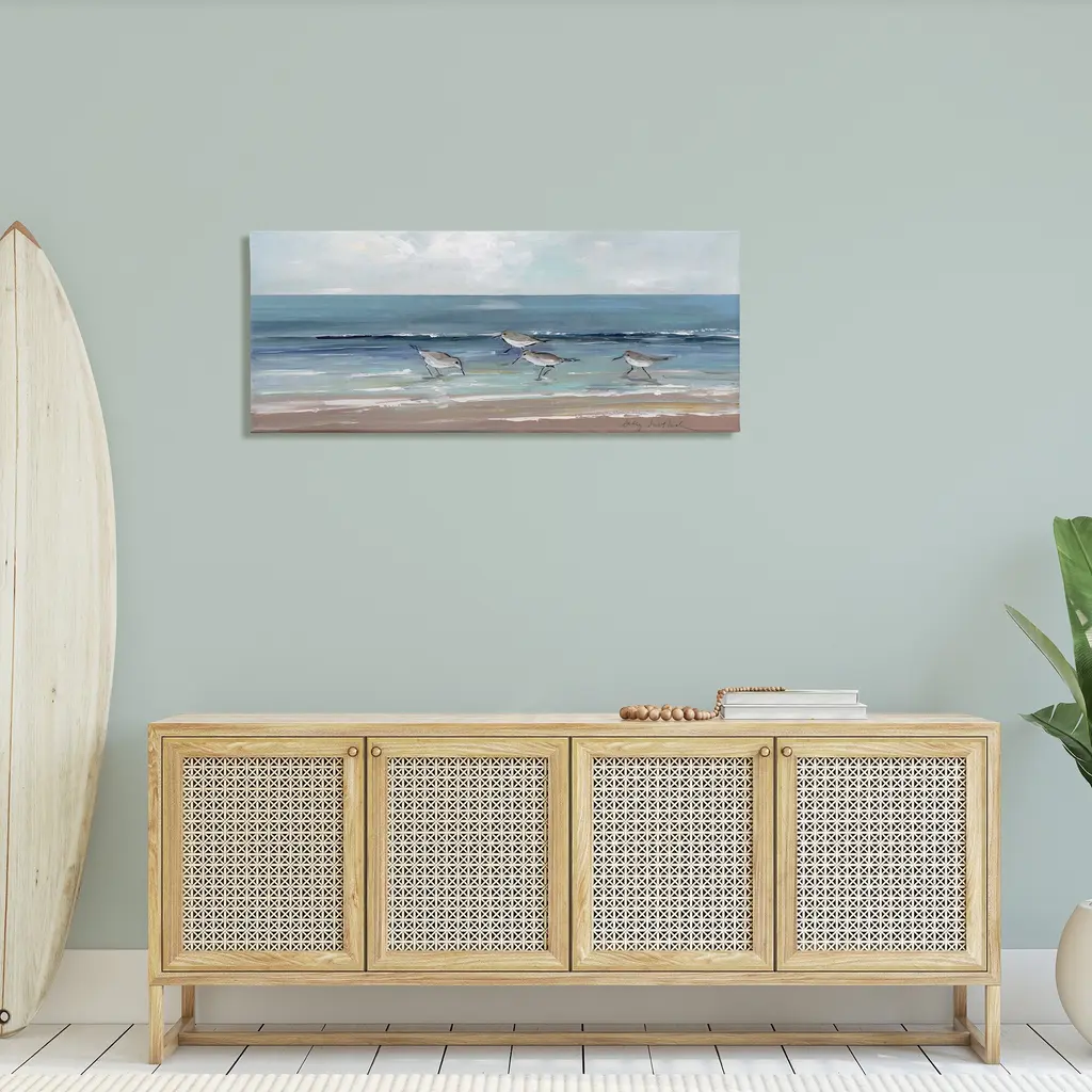 Stupell Sandpipers Birds Cloudy Sky Beach Shore Painting Canvas Wall Art - 20 X 48