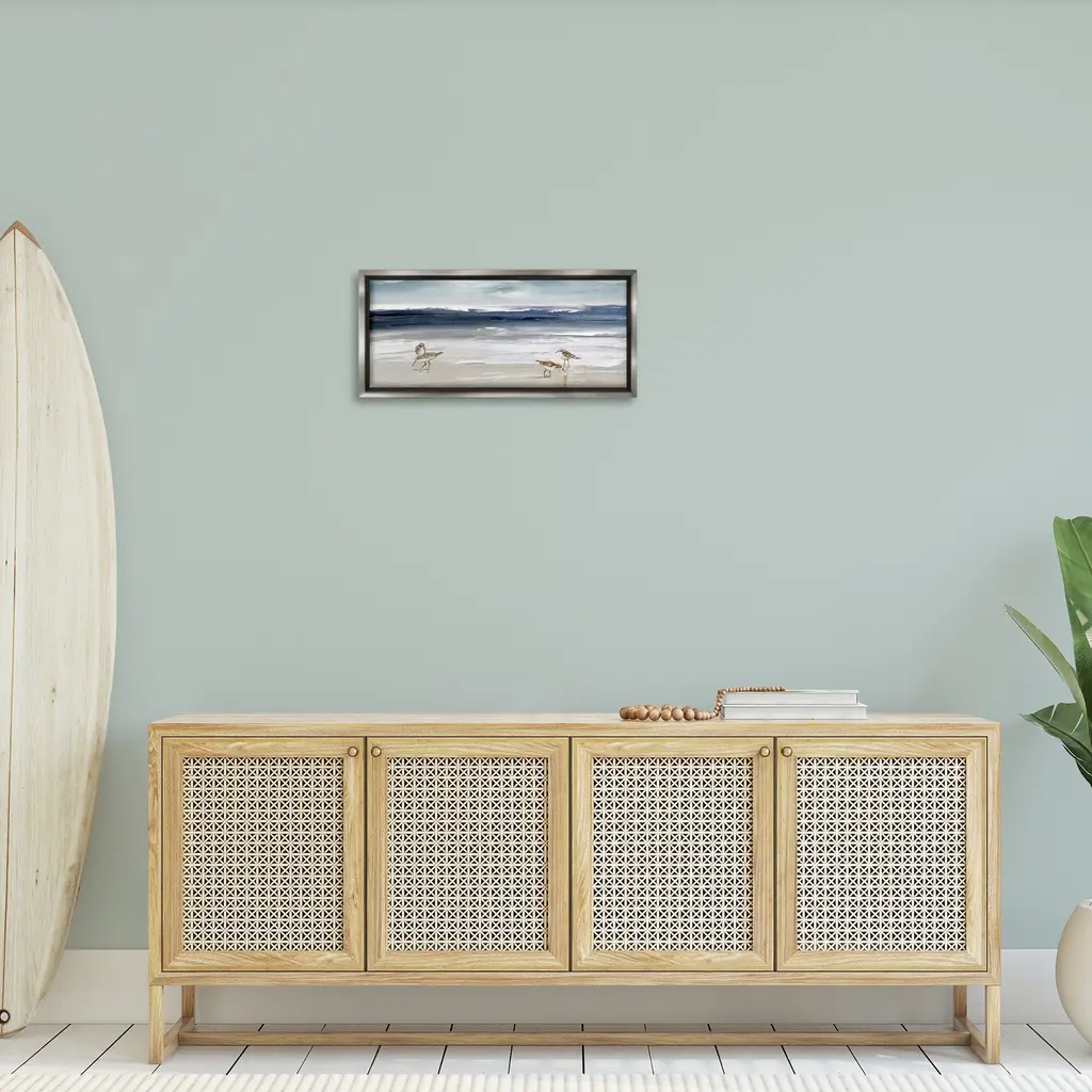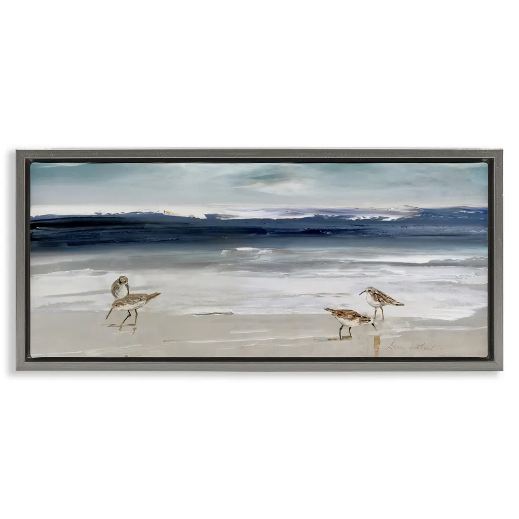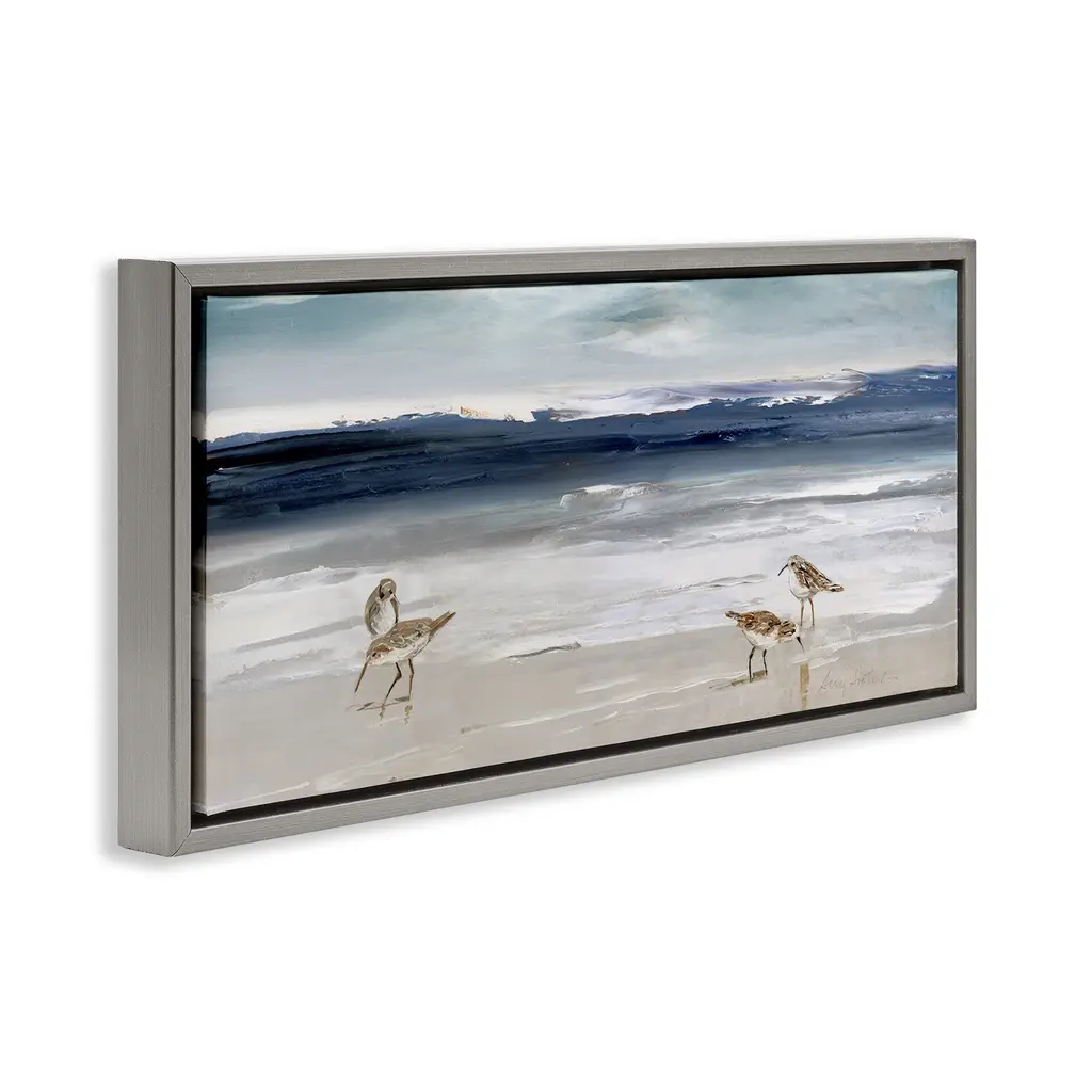 Elevate your home or office to the next level with Stupell Framed Floating Canvas Wall Art. Our premium hand-stretched canvas is mounted securely into a sturdy lightweight frame. The museum-style gap between the wrapped canvas and the box frame gives the illusion of floating artwork. Stupell Wall Art is made in the USA.Features: Dimensions: 25 x 1.7 x 11 Frame, 24 x 1.5 x 10 Canvas ArtFloating Frame Canvas Products are available in sizes 25"x11" and 31"x14". All Floating Frame Canvas Products have a 1.7" Depth.Wall Art is Ready to Hang with Hardware Free Hanging. No Installation required. For Easy Set Up Lean or Layer Artwork on Shelf or Against Wall. Artwork is Permently Fixed into the Frame.Our elevated 1.7" Thick Floating Frame is the perfect complement to our canvas style Wall Art. We use only the highest quality inks in house with industry leading printing solutions. Canvas is hand stretched over a durable wood foundation and then mounted securly into a Modern Box Frame. Made in the USA.Artwork Relates To: Painting, Bird, Animal, Waterfowl, Nature, Sea, Water, Beach, Shoreline, SandpipersDesign by Sally Swatland