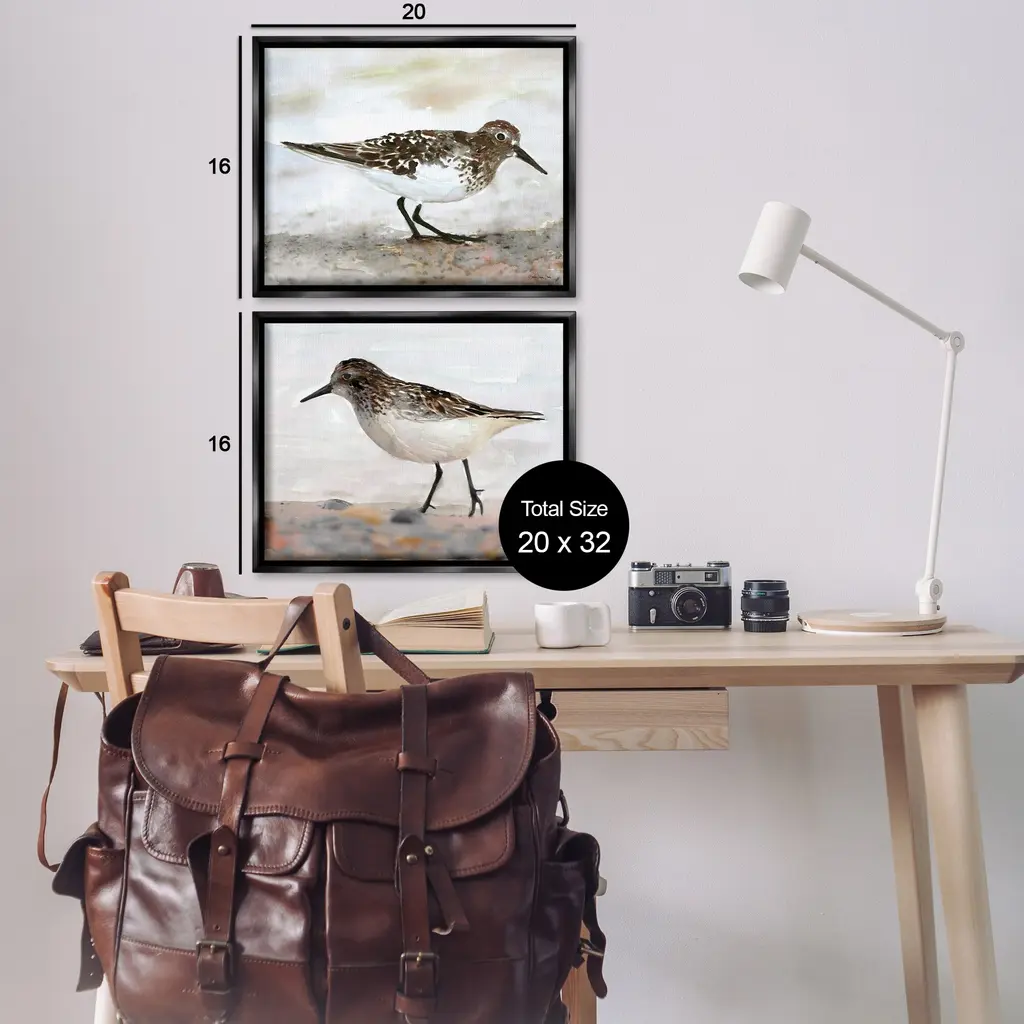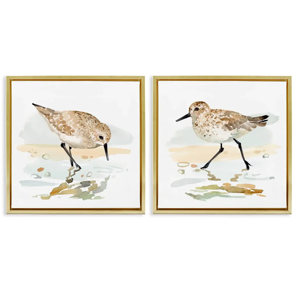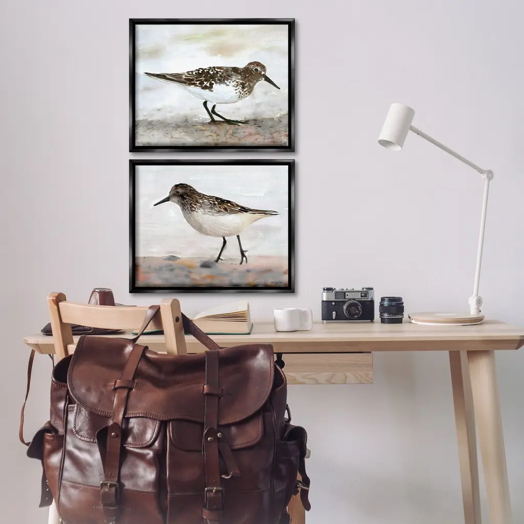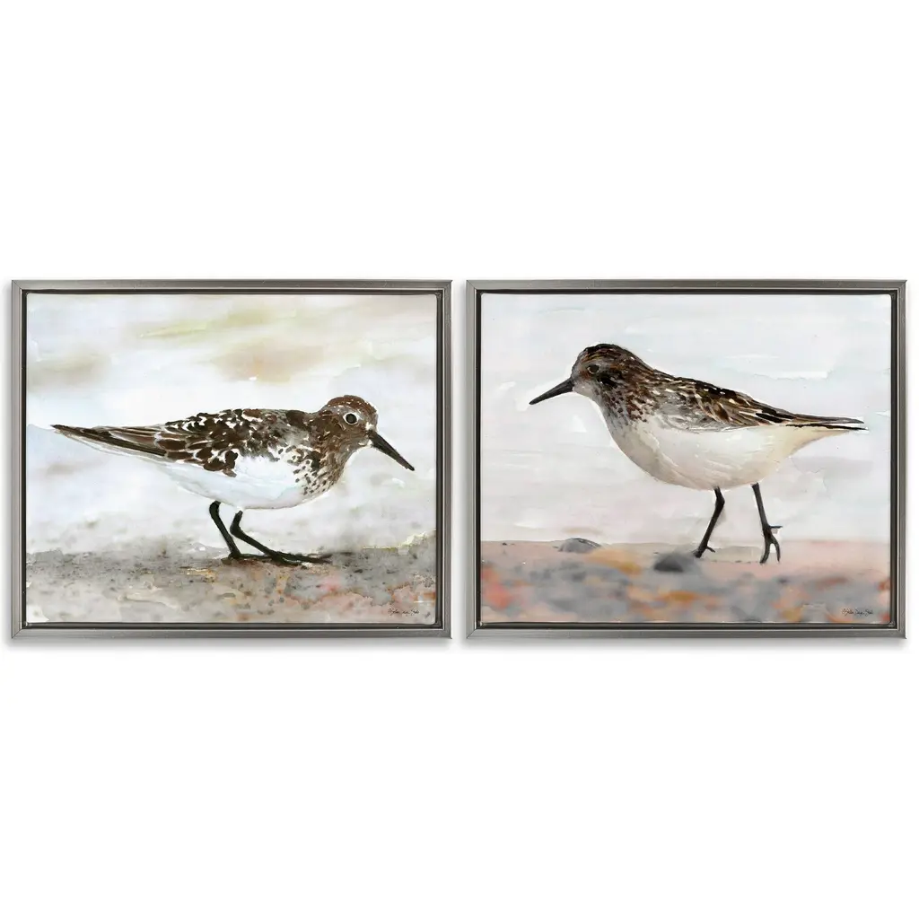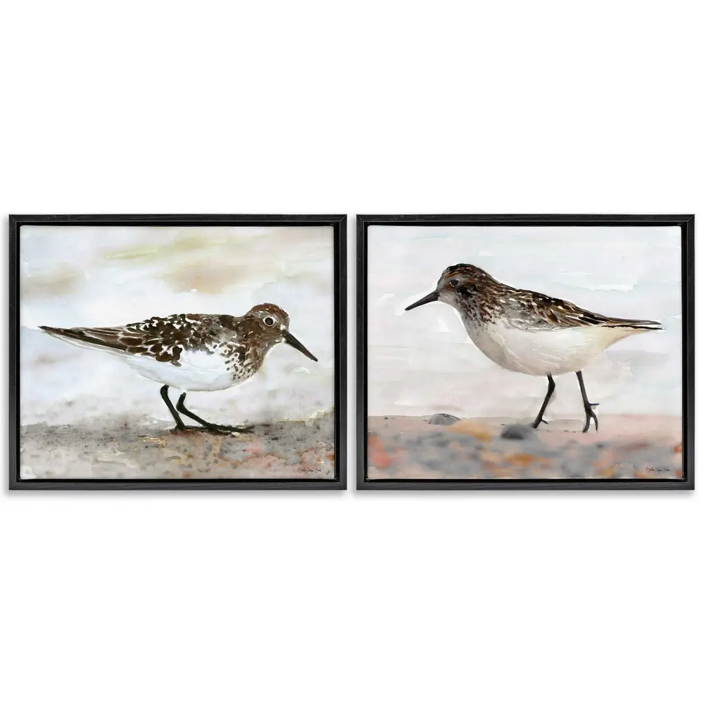 Elevate your home or office to the next level with Stupell Framed Floating Canvas Wall Art. Our premium hand-stretched canvas is mounted securely into a sturdy lightweight frame. The museum-style gap between the wrapped canvas and the box frame gives the illusion of floating artwork. Stupell Wall Art is made in the USA.Features: Dimensions: 2 Piece Set, Each Frame is 17 x 1.7 x 21Two Piece Floater Framed Canvas are available as 21"x17" or 31"x24" Panels. All Floater Frame Products have a 1.7" Depth.Wall Art is Ready to Hang with Hardware Free Hanging. No Installation required. For Easy Set Up Lean or Layer Artwork on Shelf or Against Wall. Artwork is Permently Fixed into the Frame.Our elevated 1.7" Thick Floating Frame is the perfect complement to our canvas style Wall Art. We use only the highest quality inks in house with industry leading printing solutions. Canvas is hand stretched over a durable wood foundation and then mounted securly into a Modern Box Frame. Made in the USA.Artwork Relates To: Beach, Nautical, Animal, Bird, Sandpiper, Shore, TraditionalDesign by Stellar Design Studio