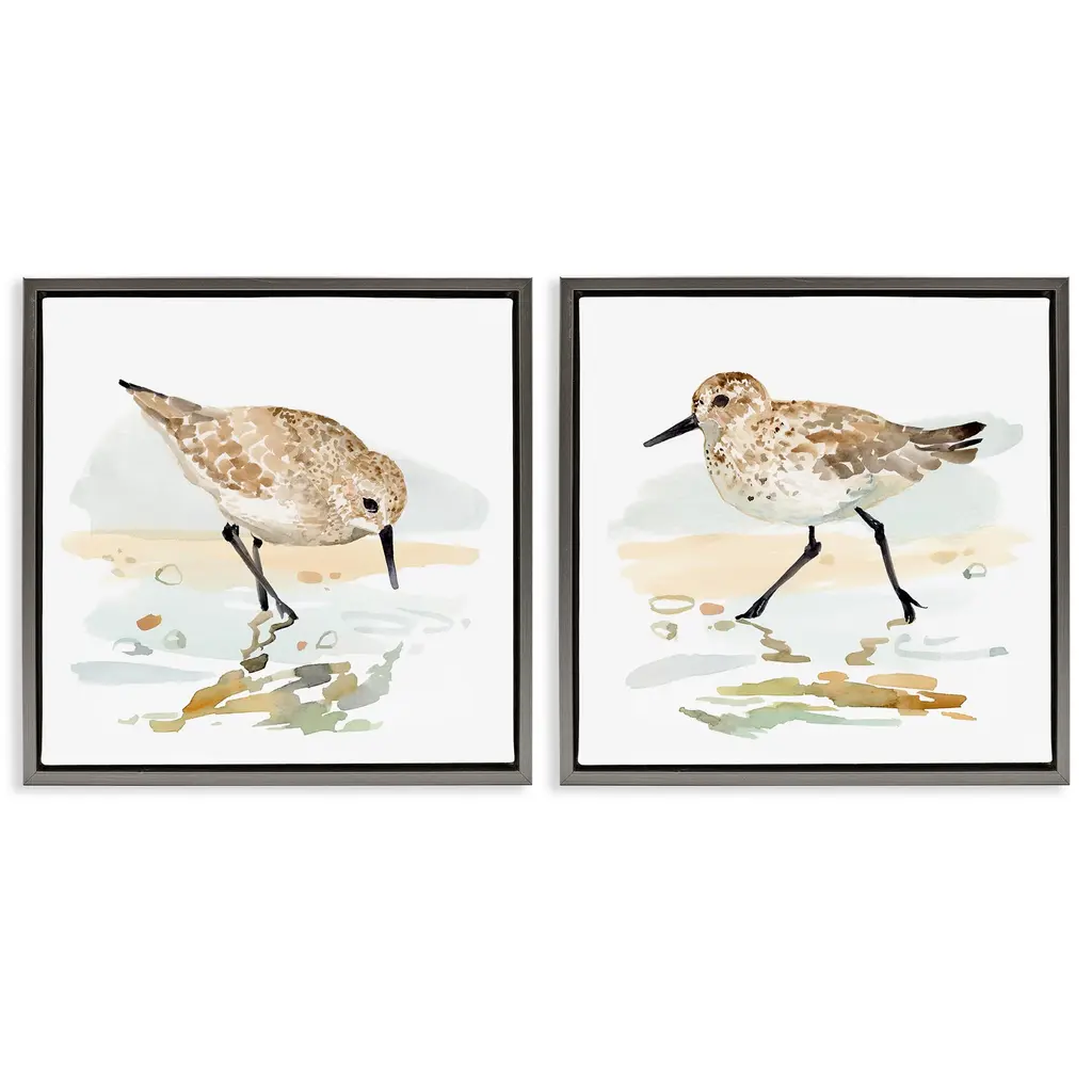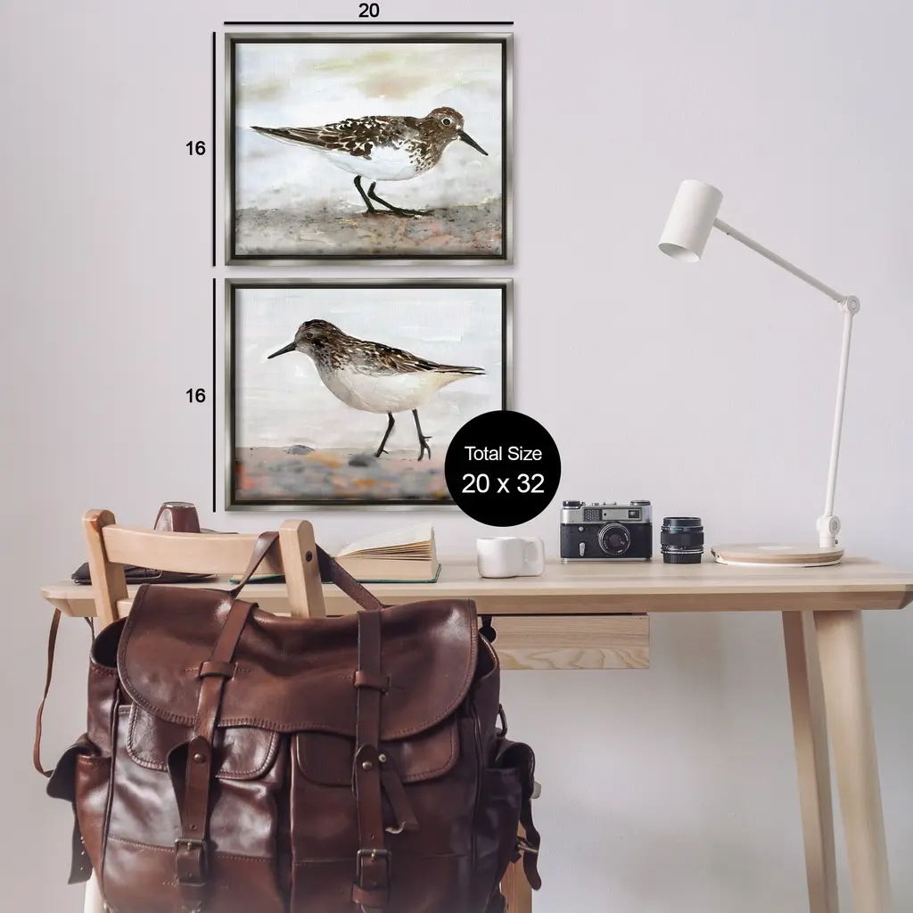 Elevate your home or office to the next level with Stupell Framed Floating Canvas Wall Art. Our premium hand-stretched canvas is mounted securely into a sturdy lightweight frame. The museum-style gap between the wrapped canvas and the box frame gives the illusion of floating artwork. Stupell Wall Art is made in the USA.Features: Dimensions: 2 Piece Set, Each Frame is 17 x 1.7 x 21Two Piece Floater Framed Canvas are available as 21"x17" or 31"x24" Panels. All Floater Frame Products have a 1.7" Depth.Wall Art is Ready to Hang with Hardware Free Hanging. No Installation required. For Easy Set Up Lean or Layer Artwork on Shelf or Against Wall. Artwork is Permently Fixed into the Frame.Our elevated 1.7" Thick Floating Frame is the perfect complement to our canvas style Wall Art. We use only the highest quality inks in house with industry leading printing solutions. Canvas is hand stretched over a durable wood foundation and then mounted securly into a Modern Box Frame. Made in the USA.Artwork Relates To: Beach, Nautical, Animal, Bird, Sandpiper, Shore, TraditionalDesign by Stellar Design Studio
