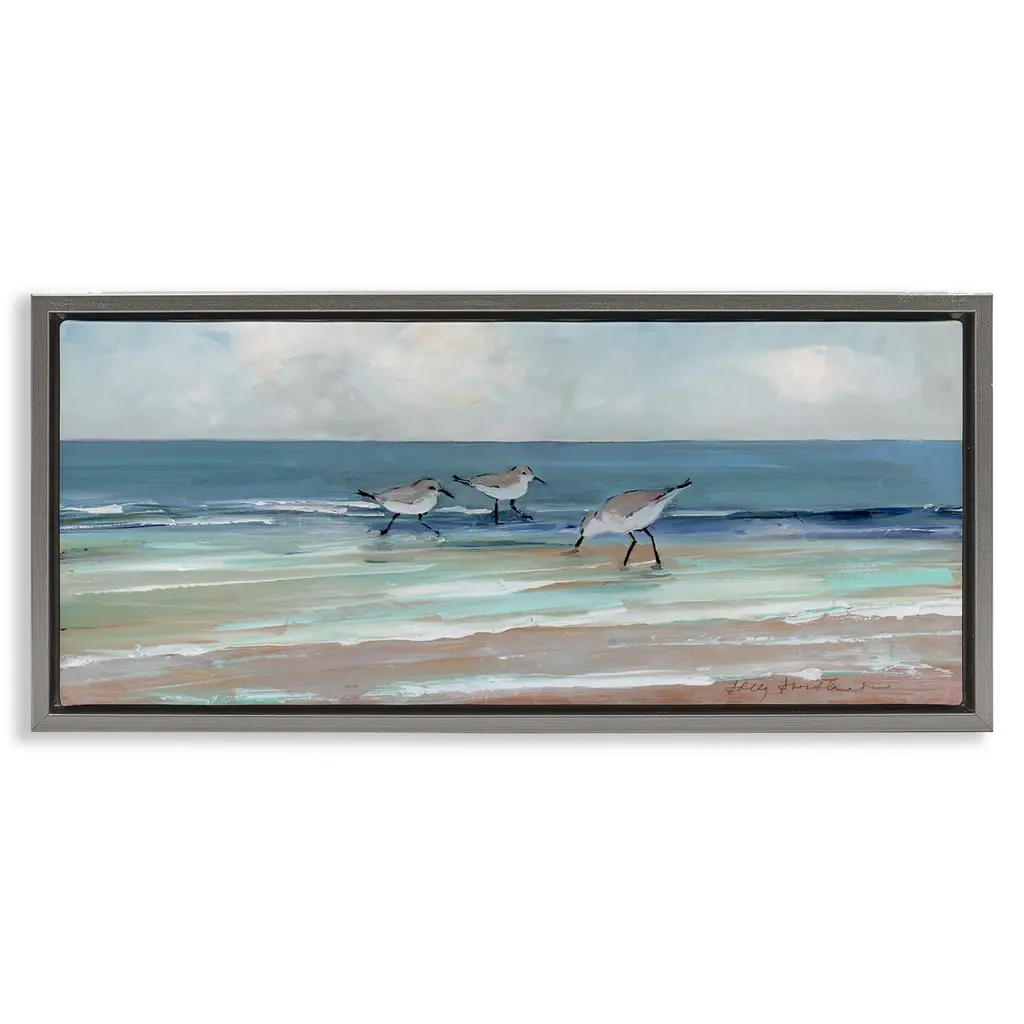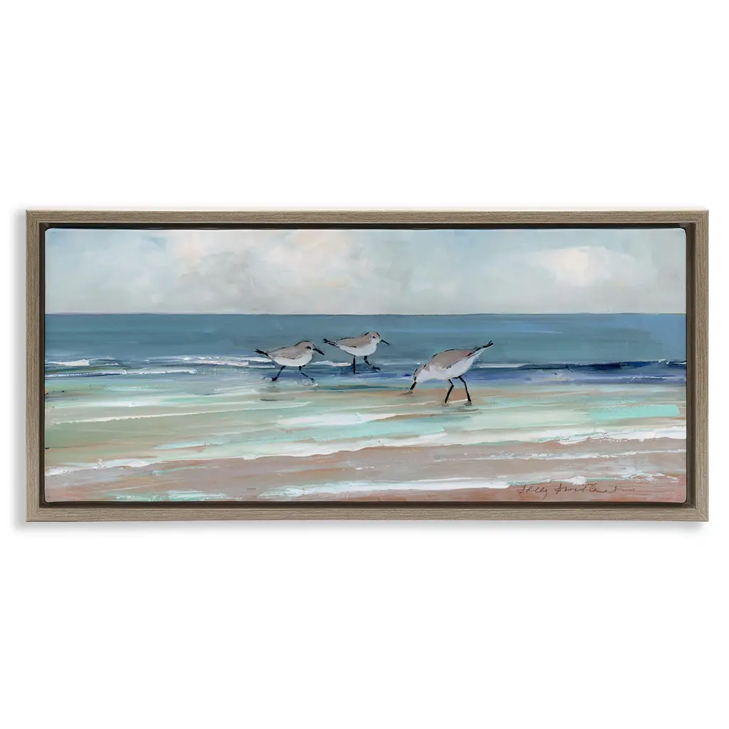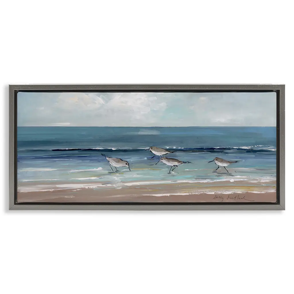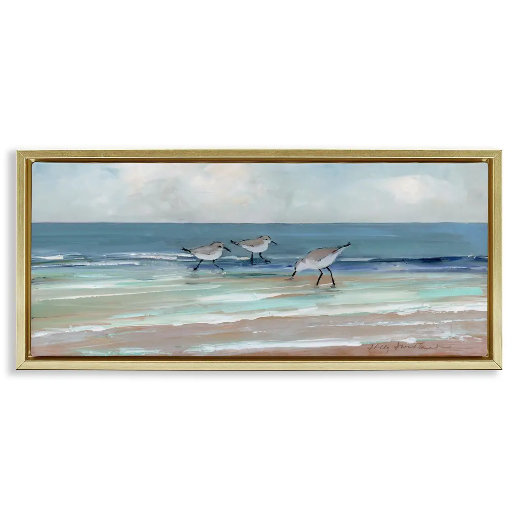 Elevate your home or office to the next level with Stupell Framed Floating Canvas Wall Art. Our premium hand-stretched canvas is mounted securely into a sturdy lightweight frame. The museum-style gap between the wrapped canvas and the box frame gives the illusion of floating artwork. Stupell Wall Art is made in the USA.Features: Dimensions: 25 x 1.7 x 11 Frame, 24 x 1.5 x 10 Canvas ArtFloating Frame Canvas Products are available in sizes 25"x11" and 31"x14". All Floating Frame Canvas Products have a 1.7" Depth.Wall Art is Ready to Hang with Hardware Free Hanging. No Installation required. For Easy Set Up Lean or Layer Artwork on Shelf or Against Wall. Artwork is Permently Fixed into the Frame.Our elevated 1.7" Thick Floating Frame is the perfect complement to our canvas style Wall Art. We use only the highest quality inks in house with industry leading printing solutions. Canvas is hand stretched over a durable wood foundation and then mounted securly into a Modern Box Frame. Made in the USA.Artwork Relates To: Bird, Animal, Painting, Shoreline, Water, Sea, Ocean, Nature, Coast, Sandpiper Design by Sally Swatland