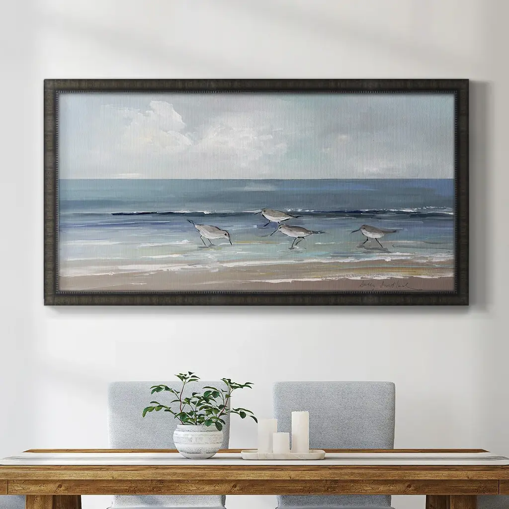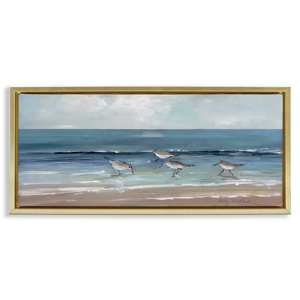Stupell Sandpipers With Cloudy Sky Framed Floater Canvas Wall Art Design By Sally Swatland - 25 X 11 - Gold