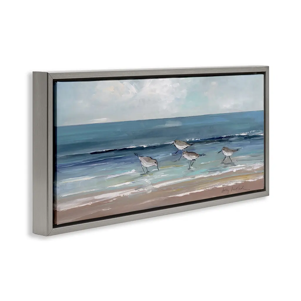 Elevate your home or office to the next level with Stupell Framed Floating Canvas Wall Art. Our premium hand-stretched canvas is mounted securely into a sturdy lightweight frame. The museum-style gap between the wrapped canvas and the box frame gives the illusion of floating artwork. Stupell Wall Art is made in the USA.Features: Dimensions: 25 x 1.7 x 11 Frame, 24 x 1.5 x 10 Canvas ArtFloating Frame Canvas Products are available in sizes 25"x11" and 31"x14". All Floating Frame Canvas Products have a 1.7" Depth.Wall Art is Ready to Hang with Hardware Free Hanging. No Installation required. For Easy Set Up Lean or Layer Artwork on Shelf or Against Wall. Artwork is Permently Fixed into the Frame.Our elevated 1.7" Thick Floating Frame is the perfect complement to our canvas style Wall Art. We use only the highest quality inks in house with industry leading printing solutions. Canvas is hand stretched over a durable wood foundation and then mounted securly into a Modern Box Frame. Made in the USA.Artwork Relates To: Bird, Animal, Painting, Shoreline, Water, Sea, Ocean, Nature, Coast, Sandpiper Design by Sally Swatland