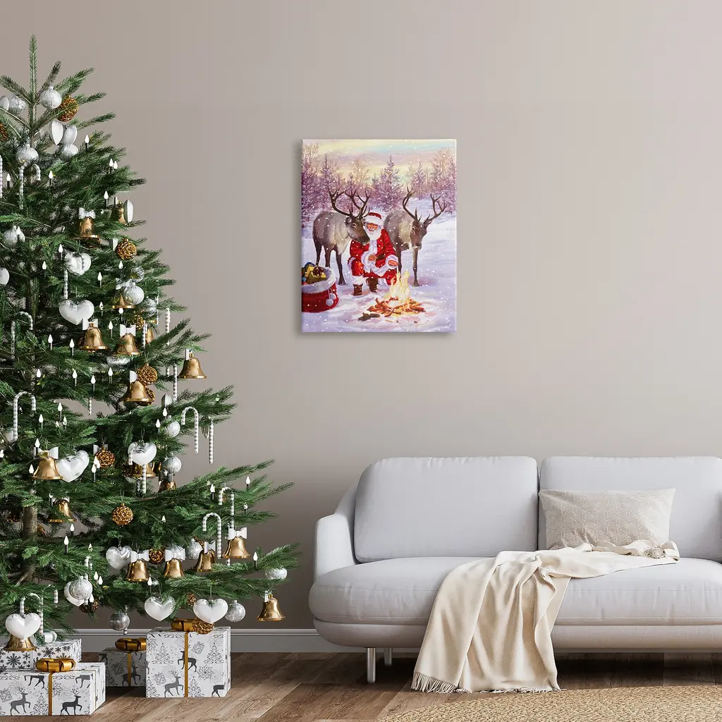 We create our stretched canvas to the highest standards. Using only the highest quality inks and canvas on Mimaki printers, we hand-cut and stretch each piece over a 1.5-inch thick wooden frame for hanging. As a result, the art comes ready to hang on the sturdy ledge with no installation required. Stupell Wall Art is made in the USA.Features: Dimensions: 16 x 1.5 x 20 InchesStretched Canvas Sizes Include Standard: 16 x 1.5 x 20 Large: 20 x 1.5 x 30 X-Large: 30 x 1.5 x 40 Oversized: 36 x 1.5 x 48Wall Art is Ready to Hang - No Installation or Hardware Needed. For Easy Set Up Lean or Layer Artwork on Shelf or Against Wall.Our stretched canvas is created with the highest standards. We use only the highest quality inks and canvas on our in house Mimaki printers, and then hand cut and stretch each piece over a 1.5 inch thick wooden frame for hanging. Made In USA.Artwork Relates To: Animal, Deer, Mammal, Christmas, Bonfire, Fire, Nature, Santa Claus, Reindeer, Holiday, Winter, SnowDesign by Pip Wilson