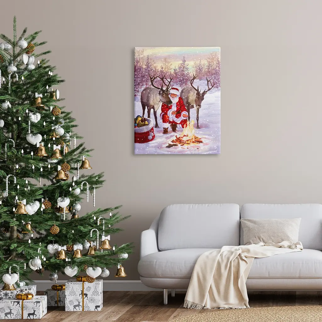 We create our stretched canvas to the highest standards. Using only the highest quality inks and canvas on Mimaki printers, we hand-cut and stretch each piece over a 1.5-inch thick wooden frame for hanging. As a result, the art comes ready to hang on the sturdy ledge with no installation required. Stupell Wall Art is made in the USA.Features: Dimensions: 16 x 1.5 x 20 InchesStretched Canvas Sizes Include Standard: 16 x 1.5 x 20 Large: 20 x 1.5 x 30 X-Large: 30 x 1.5 x 40 Oversized: 36 x 1.5 x 48Wall Art is Ready to Hang - No Installation or Hardware Needed. For Easy Set Up Lean or Layer Artwork on Shelf or Against Wall.Our stretched canvas is created with the highest standards. We use only the highest quality inks and canvas on our in house Mimaki printers, and then hand cut and stretch each piece over a 1.5 inch thick wooden frame for hanging. Made In USA.Artwork Relates To: Animal, Deer, Mammal, Christmas, Bonfire, Fire, Nature, Santa Claus, Reindeer, Holiday, Winter, SnowDesign by Pip Wilson