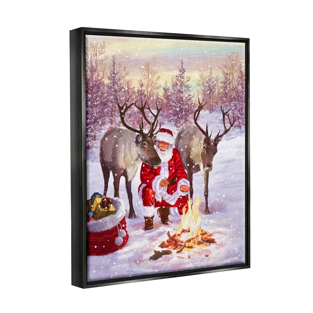 Stupell Santa & Reindeer Bonfire Scene Framed Floater Canvas Wall Art By Pip Wilson - 16 X 20 - Black