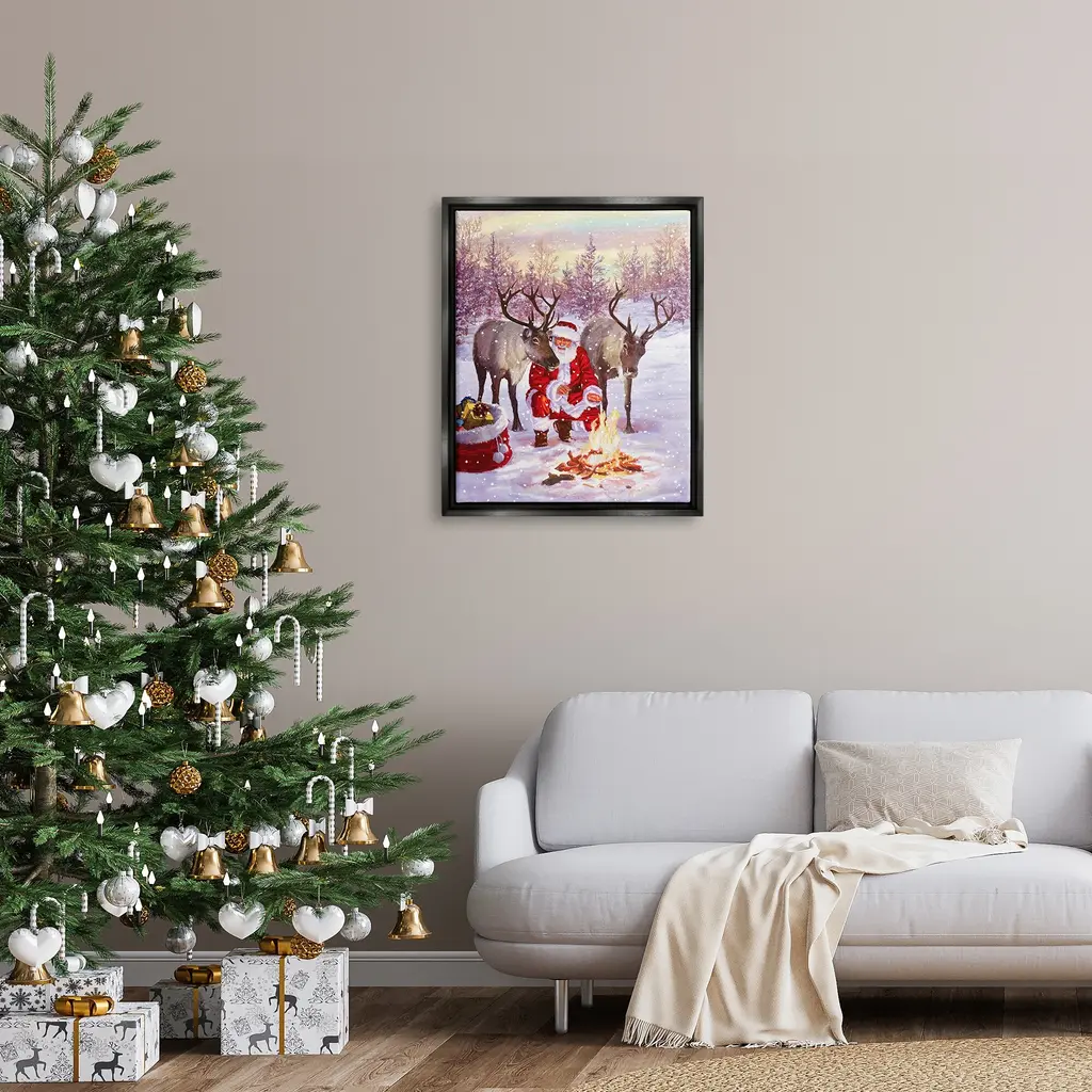 Stupell Santa & Reindeer Bonfire Scene Framed Floater Canvas Wall Art By Pip Wilson - 24 X 30 - Black