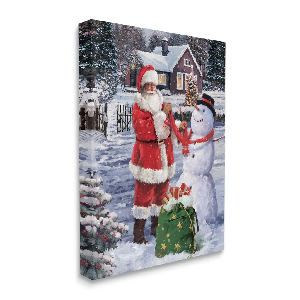 Stupell Santa Claus Building Snowman Holiday Winter Scenery Canvas Wall Art - Multi-Color - 24 X 30