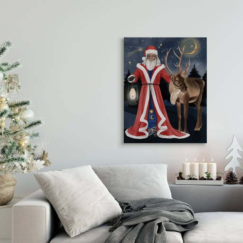 Stupell Santa Claus Under Night Sky Winter Lantern Canvas Wall Art - 24 X 30