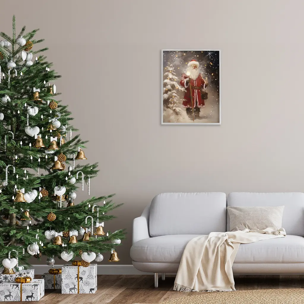 Add dimension to any room with our textured Framed Giclee Artwork. Our framed artwork is securely mounted into a 1.5-inch thick wood grain frame and ready to hang. Frames are available in three alluring styles: black, gray farmhouse and white. In addition, you should check out our oversized options if you want a statement piece. Stupell Wall Art is made in the USA.Features: Dimensions: 11 x 1.5 x 14 FramedFramed Giclee Products are available in the sizes 11"x14", 16"x20" or 24"x30". All Framed Giclee Products have a 1.5" Depth. Wall Art is Ready to Hang with Hardware Free Hanging. No installation required. For Easy Set Up Lean or Layer Artwork on Shelf or Against Wall.Our giclée prints are carefully mounted on a durable MDF backing, and then perfectly finished in a 1.5 inch thick woodgrain frame. Mounted frame colors include black, gray farmhouse and white. Made In USA.Artwork Relates To: Christmas, Santa Claus, Person, Gift, Present, Holiday, Winter, Snow, Snowflake, Night, Ornament, Light, StarDesign by Ramona Murdock