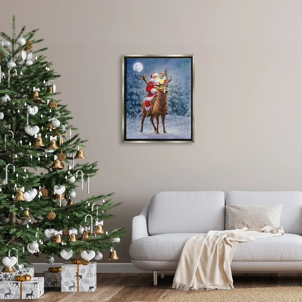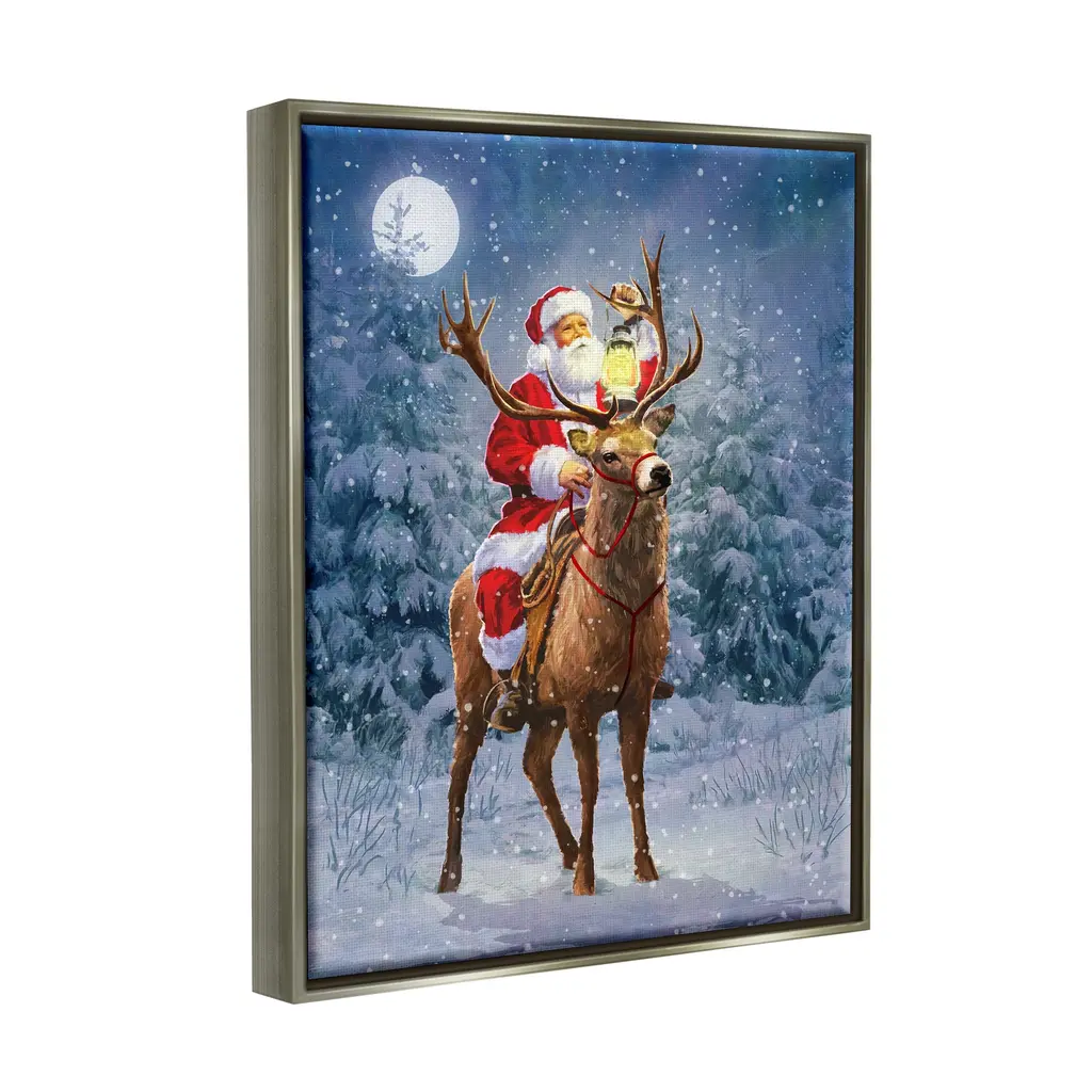 Elevate your home or office to the next level with Stupell Framed Floating Canvas Wall Art. Our premium hand-stretched canvas is mounted securely into a sturdy lightweight frame. The museum-style gap between the wrapped canvas and the box frame gives the illusion of floating artwork. Stupell Wall Art is made in the USA.Features: Dimensions: 17 x 1.7 x 21 Frame, 16 x 1.5 x 20 Canvas ArtFloating Frame Sizes Include Standard: 17 x 1.7 x 21 Oversized: 25 x 1.7 x 31Wall Art is Ready to Hang - No Installation or Hardware Needed. For Easy Set Up Lean or Layer Artwork on Shelf or Against Wall.Our elevated 1.7" Thick Floating Frame is the perfect complement to our canvas style Wall Art. We use only the highest quality inks in house with industry leading printing solutions. Canvas is hand stretched over a durable wood foundation and then mounted securly into a Modern Box Frame. Made in the USA.Artwork Relates To: Animal, Deer, Mammal, Christmas, Nature, Santa Claus, Reindeer, Holiday, Winter, SnowDesign by Pip Wilson