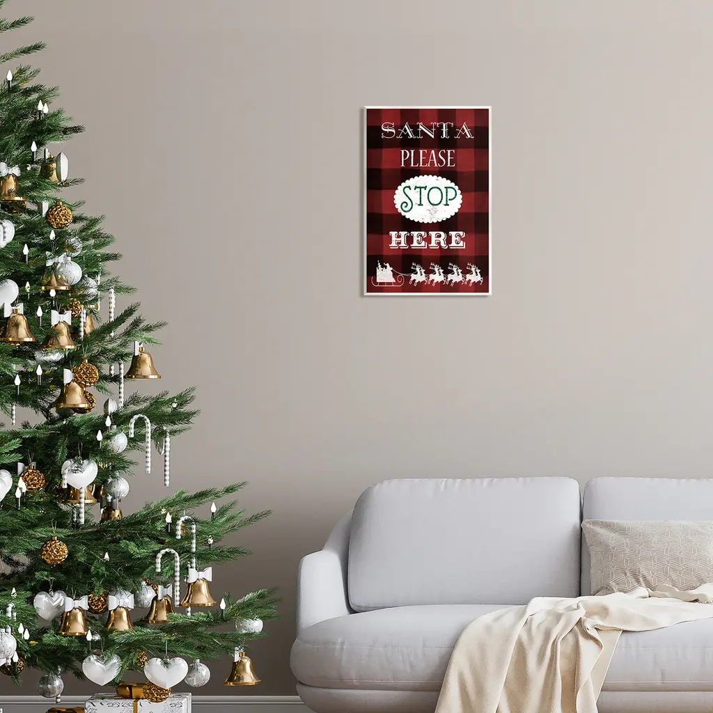 Stupell Santa Stop Here Plaid Wall Plaque Art Design By Carol Robinson - 13 X 19