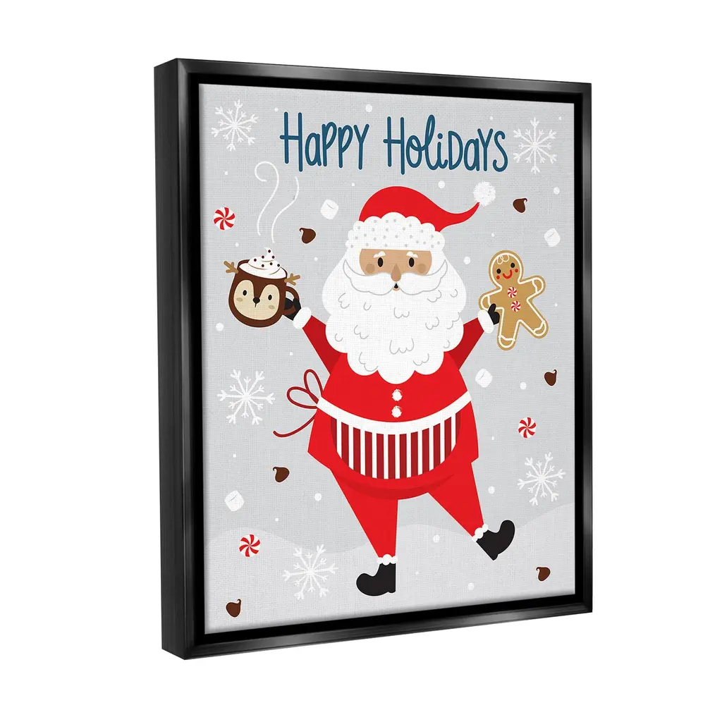 Elevate your home or office to the next level with Stupell Framed Floating Canvas Wall Art. Our premium hand-stretched canvas is mounted securely into a sturdy lightweight frame. The museum-style gap between the wrapped canvas and the box frame gives the illusion of floating artwork. Stupell Wall Art is made in the USA.Features: Dimensions: 17 x 1.7 x 21 Frame, 16 x 1.5 x 20 Canvas ArtFloating Frame Canvas Products are available in sizes 17"x21" and 25"x31". All Floating Frame Canvas Products have a 1.7" Depth.Wall Art is Ready to Hang with Hardware Free Hanging. No Installation required. For Easy Set Up Lean or Layer Artwork on Shelf or Against Wall. Artwork is Permently Fixed into the Frame.Our elevated 1.7" Thick Floating Frame is the perfect complement to our canvas style Wall Art. We use only the highest quality inks in house with industry leading printing solutions. Canvas is hand stretched over a durable wood foundation and then mounted securly into a Modern Box Frame. Made in the USA.Artwork Relates To: Christmas, Santa Claus, Person, Holiday, Winter, Snow, Snowflake, Cookie, Cocoa, Happy HolidaysDesign by Ilis Avilés
