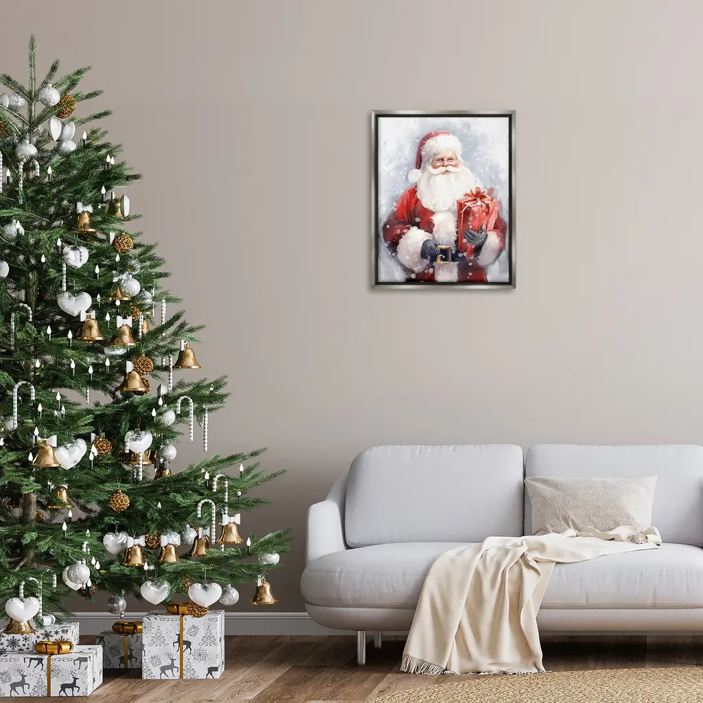 Elevate your home or office to the next level with Stupell Framed Floating Canvas Wall Art. Our premium hand-stretched canvas is mounted securely into a sturdy lightweight frame. The museum-style gap between the wrapped canvas and the box frame gives the illusion of floating artwork. Stupell Wall Art is made in the USA.Features: Dimensions: 17 x 1.7 x 21 Frame, 16 x 1.5 x 20 Canvas ArtFloating Frame Canvas Products are available in sizes 17"x21" and 25"x31". All Floating Frame Canvas Products have a 1.7" Depth.Wall Art is Ready to Hang with Hardware Free Hanging. No Installation required. For Easy Set Up Lean or Layer Artwork on Shelf or Against Wall. Artwork is Permently Fixed into the Frame.Our elevated 1.7" Thick Floating Frame is the perfect complement to our canvas style Wall Art. We use only the highest quality inks in house with industry leading printing solutions. Canvas is hand stretched over a durable wood foundation and then mounted securly into a Modern Box Frame. Made in the USA.Artwork Relates To: Christmas, Santa Claus, Person, Gift, Present, Holiday, Winter, Snow, SnowflakeDesign by Ramona Murdock