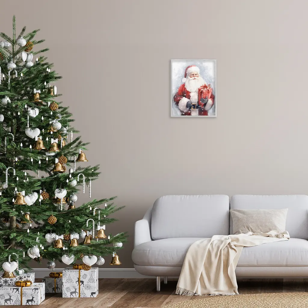 Add dimension to any room with our textured Framed Giclee Artwork. Our framed artwork is securely mounted into a 1.5-inch thick wood grain frame and ready to hang. Frames are available in three alluring styles: black, gray farmhouse and white. In addition, you should check out our oversized options if you want a statement piece. Stupell Wall Art is made in the USA.Features: Dimensions: 11 x 1.5 x 14 FramedFramed Giclee Products are available in the sizes 11"x14", 16"x20" or 24"x30". All Framed Giclee Products have a 1.5" Depth. Wall Art is Ready to Hang with Hardware Free Hanging. No installation required. For Easy Set Up Lean or Layer Artwork on Shelf or Against Wall.Our giclée prints are carefully mounted on a durable MDF backing, and then perfectly finished in a 1.5 inch thick woodgrain frame. Mounted frame colors include black, gray farmhouse and white. Made In USA.Artwork Relates To: Christmas, Santa Claus, Person, Gift, Present, Holiday, Winter, Snow, SnowflakeDesign by Ramona Murdock