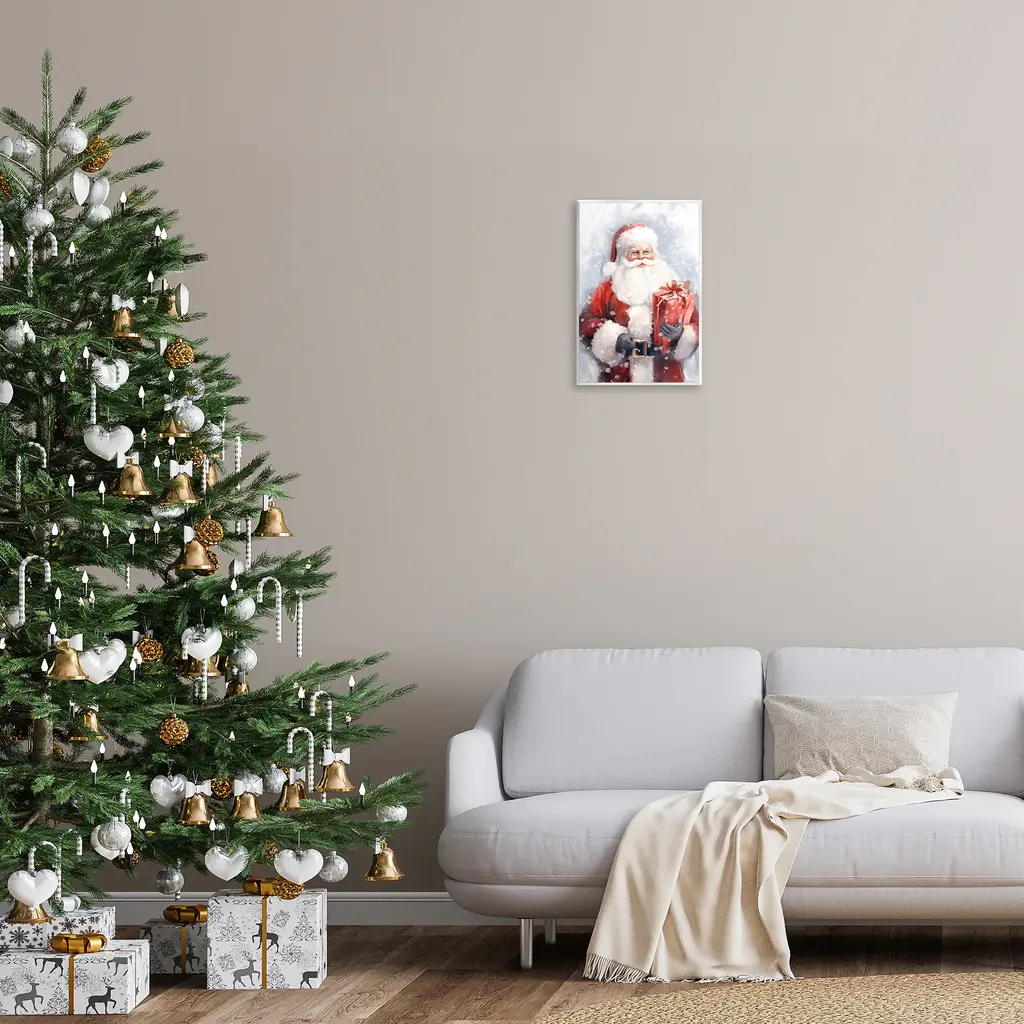 Stupell Santa With Red Gift Wall Plaque Art Design By Ramona Murdock - 13 X 19