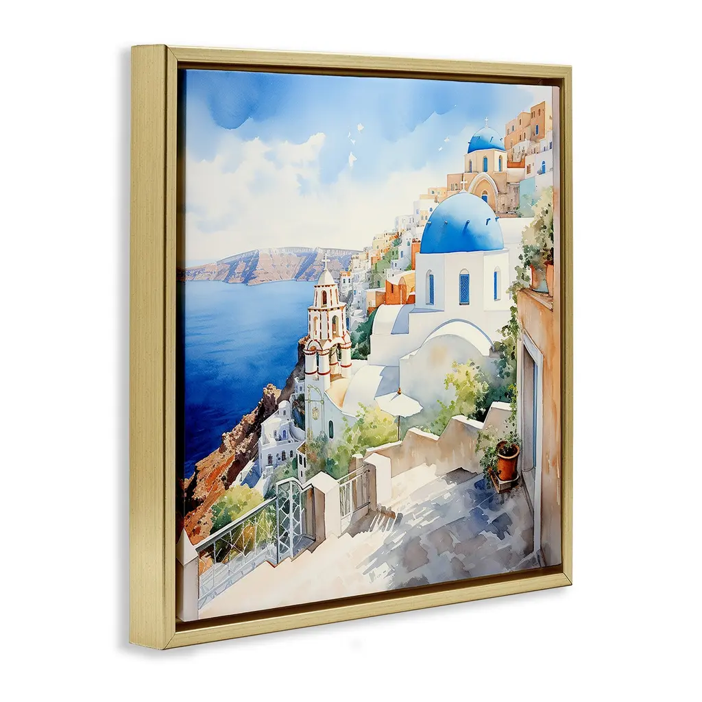 Stupell Santorini City Landscape Framed Floater Canvas Wall Art Design By Lsr Design Studio - 18 X 18 - Gold
