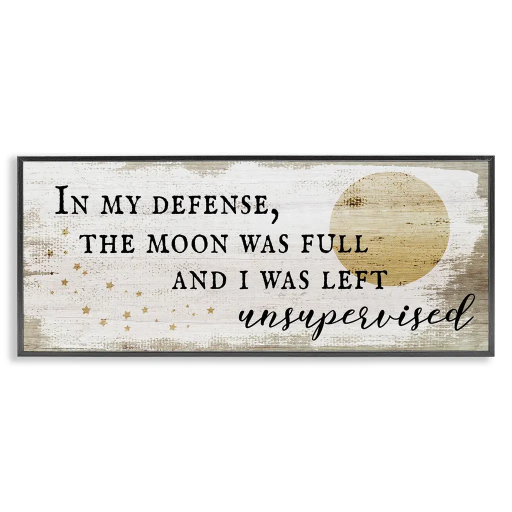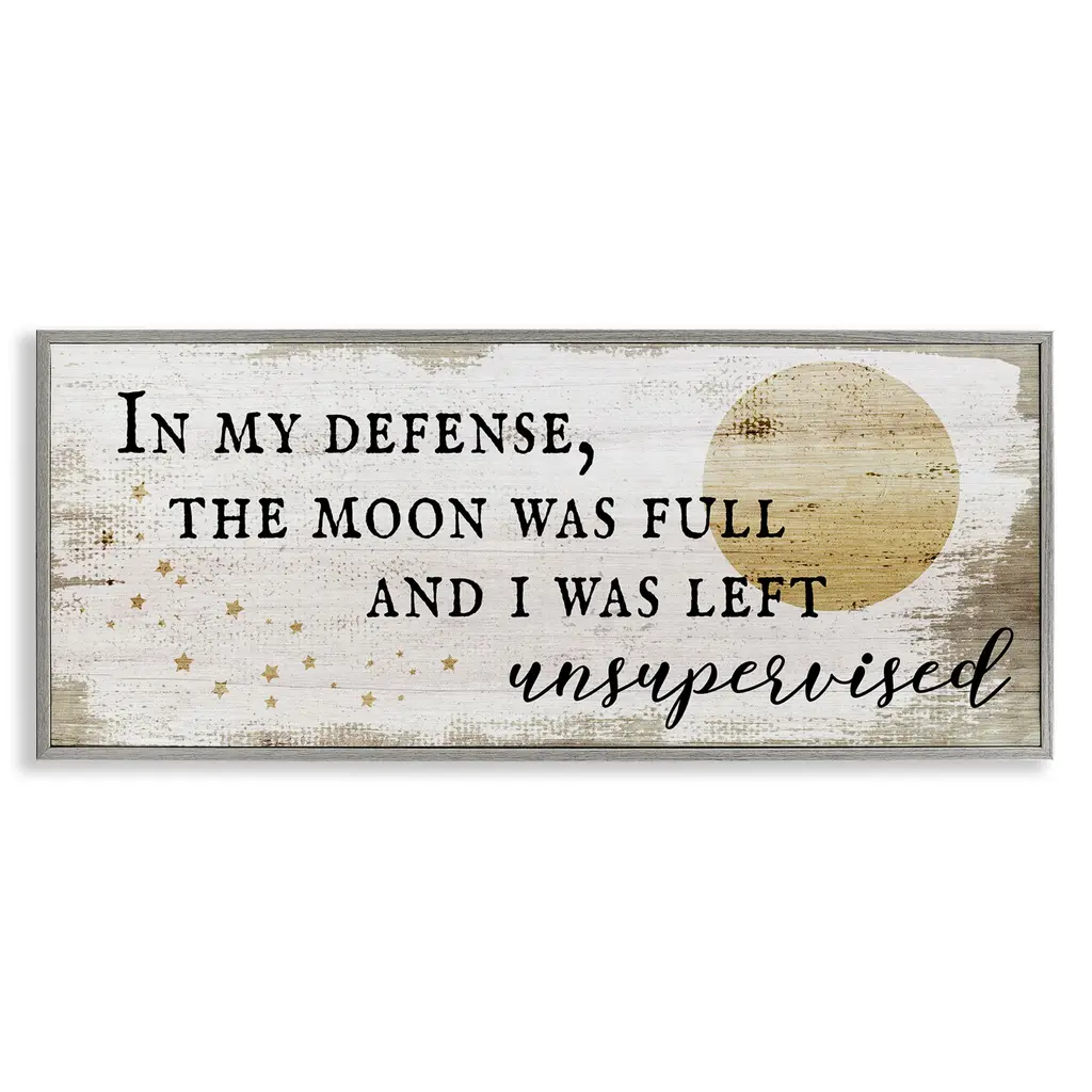 Add dimension to any room with our textured Framed Giclee Artwork. Our framed artwork is securely mounted into a 1.5-inch thick wood grain frame and ready to hang. Frames are available in three alluring styles: black, gray farmhouse and white. In addition, you should check out our oversized options if you want a statement piece. Stupell Wall Art is made in the USA.Features: Dimensions: 24 x 1.5 x 10 FramedFramed Giclee Product Sizes include 24"x10" and 30"x13". All Framed Giclee products have a 1.5" Depth.Wall Art is Ready to Hang with Hardware Free Hanging. No installation required. For Easy Set Up Lean or Layer Artwork on Shelf or Against Wall.Our giclée prints are carefully mounted on a durable MDF backing, and then perfectly finished in a 1.5 inch thick woodgrain frame. Mounted frame colors include black, gray farmhouse and white. Made In USA.Artwork Relates To: Halloween, Moon, Holiday, Humor, Sassy, Charming, Rustic, CountryDesign by Daphne Polselli