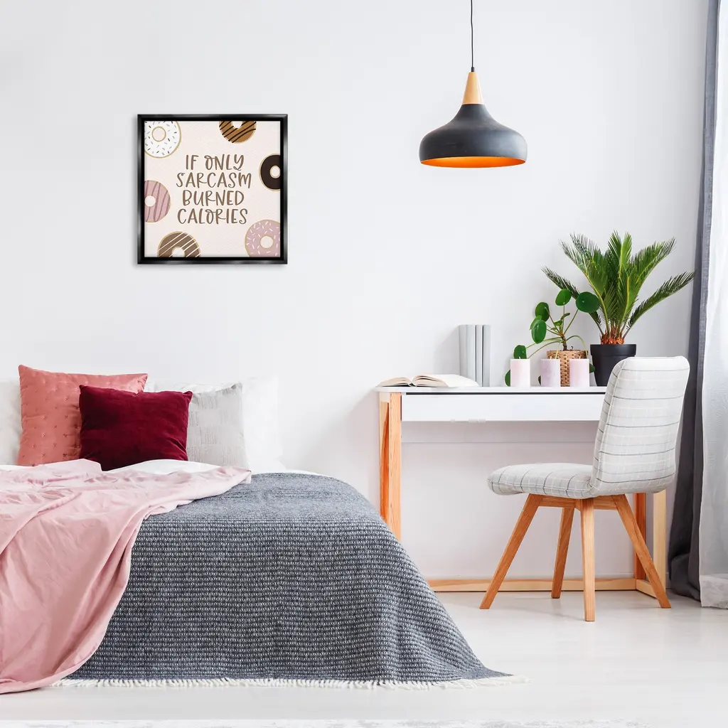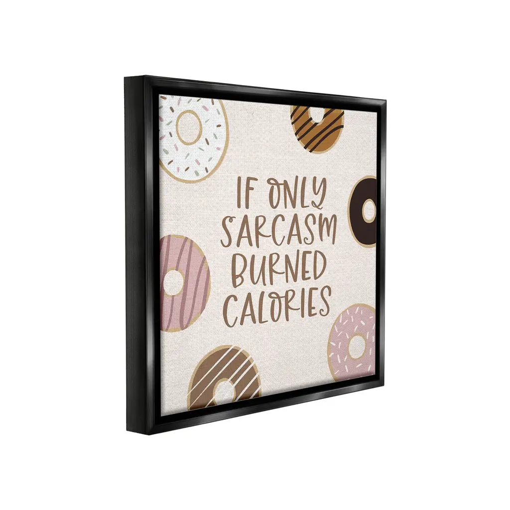 Elevate your home or office to the next level with Stupell Framed Floating Canvas Wall Art. Our premium hand-stretched canvas is mounted securely into a sturdy lightweight frame. The museum-style gap between the wrapped canvas and the box frame gives the illusion of floating artwork. Stupell Wall Art is made in the USA.Features: Dimensions: 18 x 1.7 x 18 Frame, 17 x 1.5 x 17 Canvas ArtFloating Frame Canvas Products are available in sizes 18"x18" and 25"x25". All Floating Frame Canvas Products have a 1.7" Depth.Wall Art is Ready to Hang with Hardware Free Hanging. No Installation required. For Easy Set Up Lean or Layer Artwork on Shelf or Against Wall. Artwork is Permently Fixed into the Frame.Our elevated 1.7" Thick Floating Frame is the perfect complement to our canvas style Wall Art. We use only the highest quality inks in house with industry leading printing solutions. Canvas is hand stretched over a durable wood foundation and then mounted securly into a Modern Box Frame. Made in the USA.Artwork Relates To: Food, Sweets, Donut, Kitchen, Dessert, Humor, Sassy, Pattern, Funny, If Only Sarcasm Burned CaloriesDesign by Lady Louise Designs