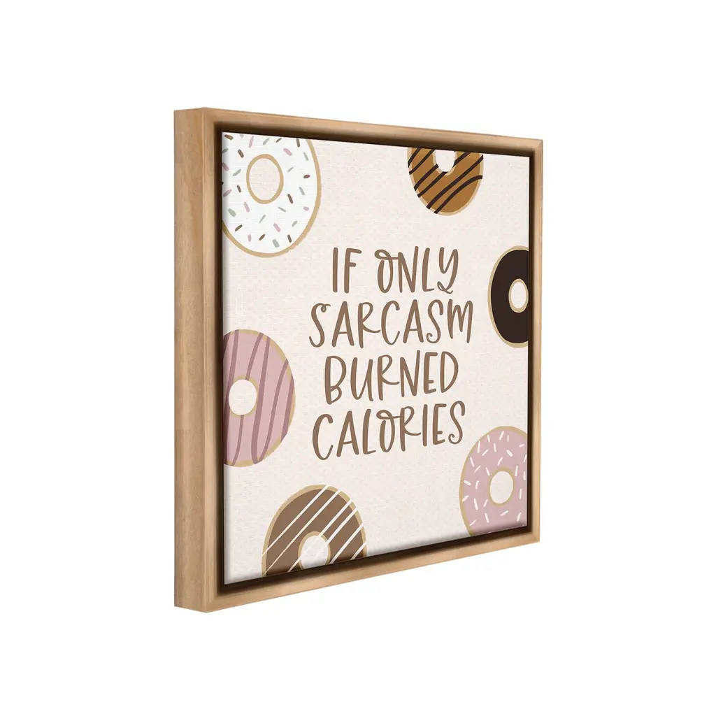 Elevate your home or office to the next level with Stupell Framed Floating Canvas Wall Art. Our premium hand-stretched canvas is mounted securely into a sturdy lightweight frame. The museum-style gap between the wrapped canvas and the box frame gives the illusion of floating artwork. Stupell Wall Art is made in the USA.Features: Dimensions: 18 x 1.7 x 18 Frame, 17 x 1.5 x 17 Canvas ArtFloating Frame Canvas Products are available in sizes 18"x18" and 25"x25". All Floating Frame Canvas Products have a 1.7" Depth.Wall Art is Ready to Hang with Hardware Free Hanging. No Installation required. For Easy Set Up Lean or Layer Artwork on Shelf or Against Wall. Artwork is Permently Fixed into the Frame.Our elevated 1.7" Thick Floating Frame is the perfect complement to our canvas style Wall Art. We use only the highest quality inks in house with industry leading printing solutions. Canvas is hand stretched over a durable wood foundation and then mounted securly into a Modern Box Frame. Made in the USA.Artwork Relates To: Food, Sweets, Donut, Kitchen, Dessert, Humor, Sassy, Pattern, Funny, If Only Sarcasm Burned CaloriesDesign by Lady Louise Designs