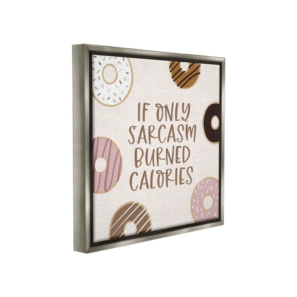 Elevate your home or office to the next level with Stupell Framed Floating Canvas Wall Art. Our premium hand-stretched canvas is mounted securely into a sturdy lightweight frame. The museum-style gap between the wrapped canvas and the box frame gives the illusion of floating artwork. Stupell Wall Art is made in the USA.Features: Dimensions: 18 x 1.7 x 18 Frame, 17 x 1.5 x 17 Canvas ArtFloating Frame Canvas Products are available in sizes 18"x18" and 25"x25". All Floating Frame Canvas Products have a 1.7" Depth.Wall Art is Ready to Hang with Hardware Free Hanging. No Installation required. For Easy Set Up Lean or Layer Artwork on Shelf or Against Wall. Artwork is Permently Fixed into the Frame.Our elevated 1.7" Thick Floating Frame is the perfect complement to our canvas style Wall Art. We use only the highest quality inks in house with industry leading printing solutions. Canvas is hand stretched over a durable wood foundation and then mounted securly into a Modern Box Frame. Made in the USA.Artwork Relates To: Food, Sweets, Donut, Kitchen, Dessert, Humor, Sassy, Pattern, Funny, If Only Sarcasm Burned CaloriesDesign by Lady Louise Designs