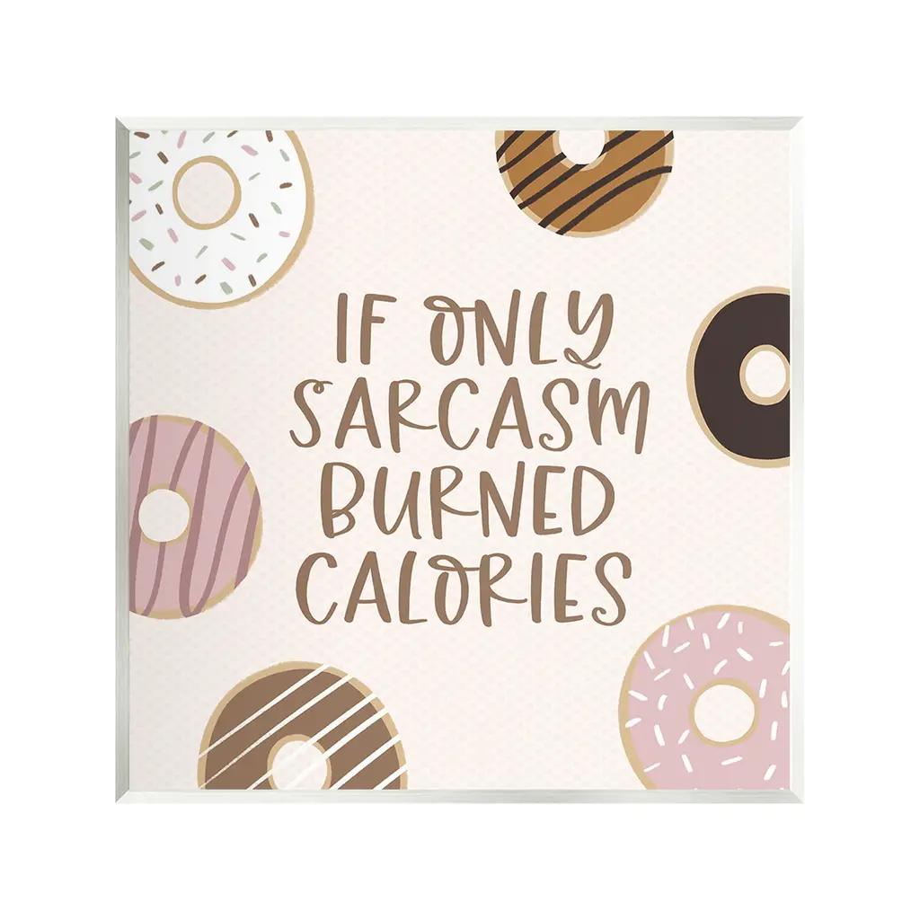 Add dimension to any room with our textured Framed Giclee Artwork. Our framed artwork is securely mounted into a 1.5-inch thick wood grain frame and ready to hang. Frames are available in three alluring styles: black, gray farmhouse and white. In addition, you should check out our oversized options if you want a statement piece. Stupell Wall Art is made in the USA.Features: Dimensions: 12 x 1.5 x 12 FramedFramed Giclee Product Sizes Include 12"x12", 17"x17", and 24"x24". Framed Giclee Products have a 1.5" Depth. Wall Art is Ready to Hang with Hardware Free Hanging. No installation required. For Easy Set Up Lean or Layer Artwork on Shelf or Against Wall.Our giclée prints are carefully mounted on a durable MDF backing, and then perfectly finished in a 1.5 inch thick woodgrain frame. Mounted frame colors include black, gray farmhouse and white. Made In USA.Artwork Relates To: Food, Sweets, Donut, Kitchen, Dessert, Humor, Sassy, Pattern, Funny, If Only Sarcasm Burned CaloriesDesign by Lady Louise Designs