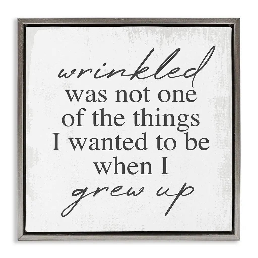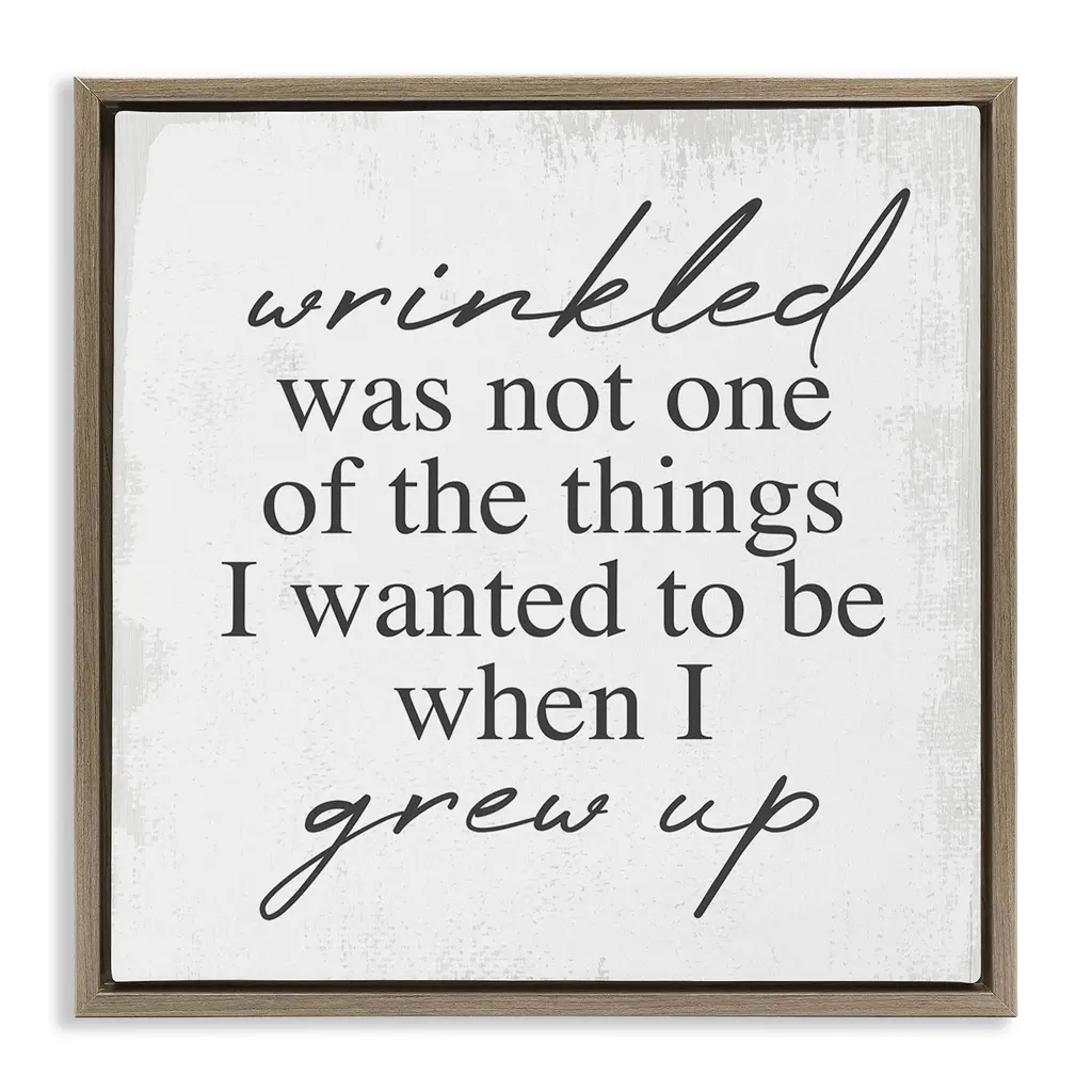 Elevate your home or office to the next level with Stupell Framed Floating Canvas Wall Art. Our premium hand-stretched canvas is mounted securely into a sturdy lightweight frame. The museum-style gap between the wrapped canvas and the box frame gives the illusion of floating artwork. Stupell Wall Art is made in the USA.Features: Dimensions: 18 x 1.7 x 18 Frame, 17 x 1.5 x 17 Canvas ArtFloating Frame Canvas Products are available in sizes 18"x18" and 25"x25". All Floating Frame Canvas Products have a 1.7" Depth.Wall Art is Ready to Hang with Hardware Free Hanging. No Installation required. For Easy Set Up Lean or Layer Artwork on Shelf or Against Wall. Artwork is Permently Fixed into the Frame.Our elevated 1.7" Thick Floating Frame is the perfect complement to our canvas style Wall Art. We use only the highest quality inks in house with industry leading printing solutions. Canvas is hand stretched over a durable wood foundation and then mounted securly into a Modern Box Frame. Made in the USA.Artwork Relates To: Humor, Aging, Phrase, Funny, RetirementDesign by Lil' Rue