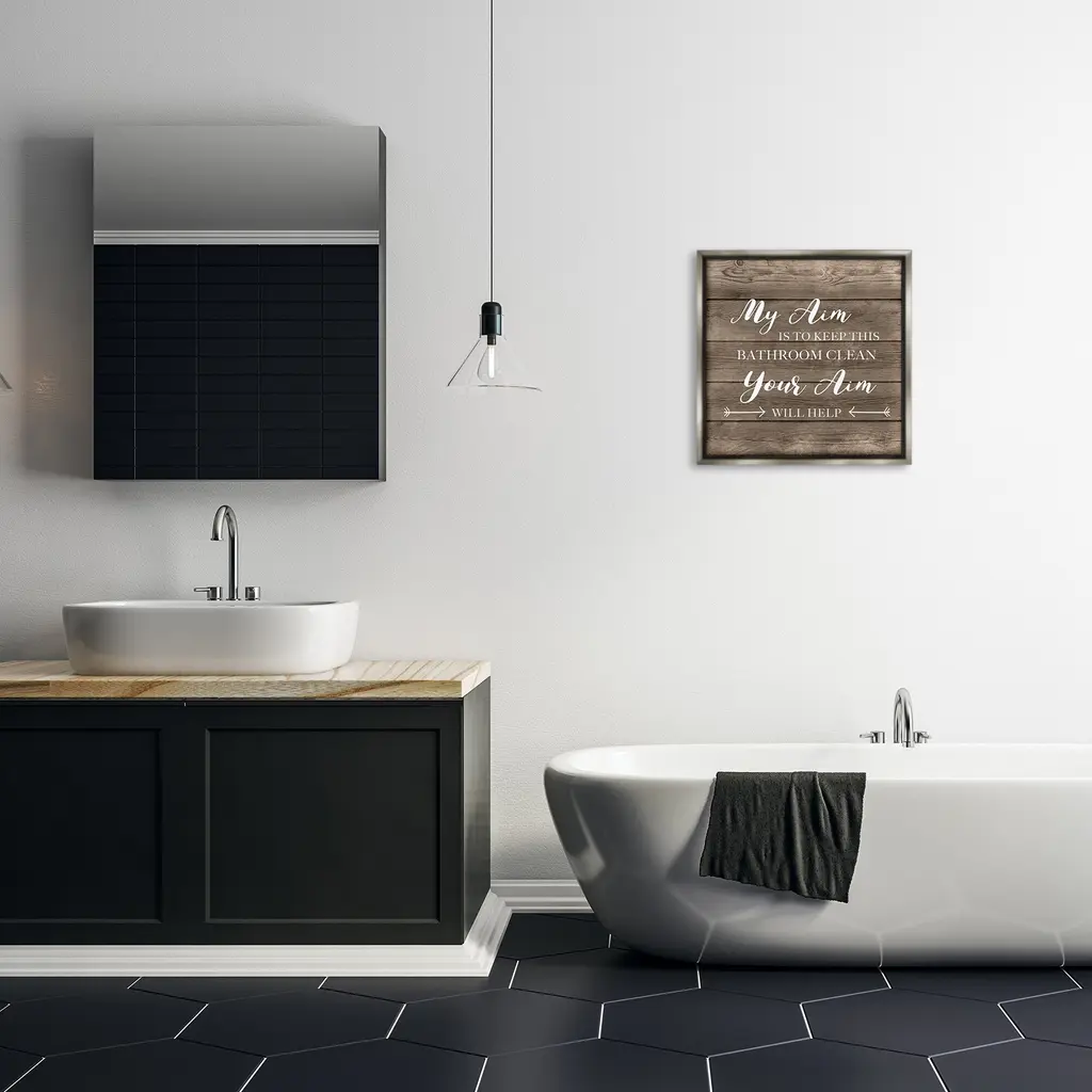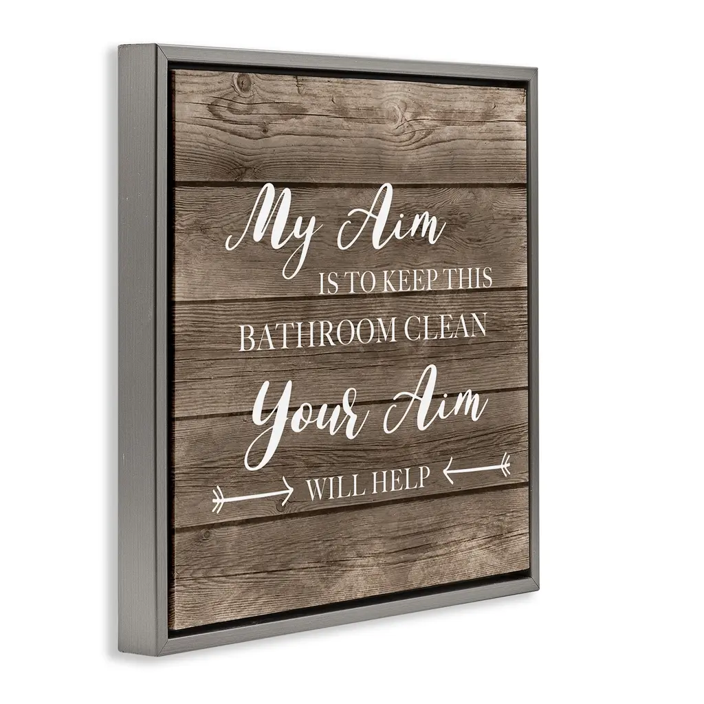 Stupell Sassy Your Aim Toilet Cleanliness Framed Floater Canvas Wall Art Design By Cad Designs - 18 X 18 - Grey